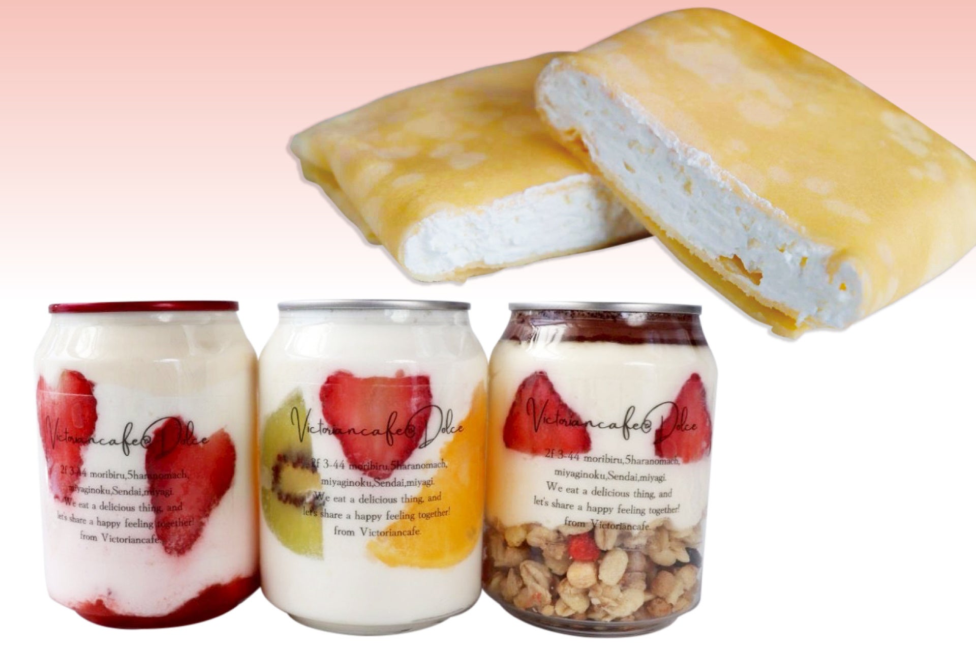 360℃どこから見ても可愛い!フルーツたっぷりケーキ缶、新鮮な蔵王の牛乳で作った美味しいクレープ10種です。
