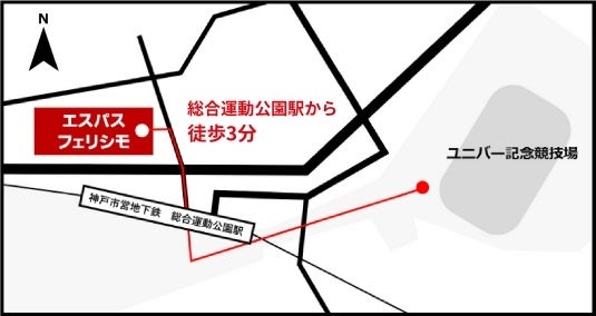 場所/エスパスフェリシモ 1F エントランス(神戸市須磨区弥栄台2-7)※神戸市営地下鉄「総合運動公園駅」北出口1出口、徒歩約3分