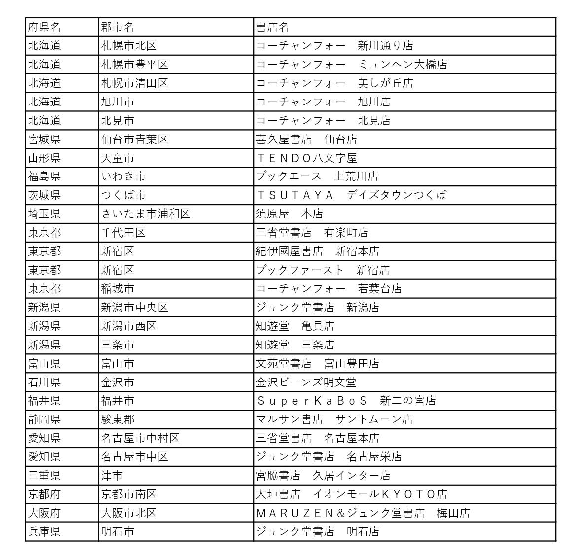 【『黄昏流星群』超巨大試し読み冊子設置書店リスト】