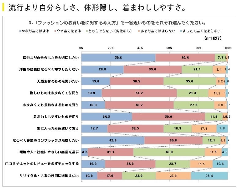 さまざまな意見がありながらも、やはり「自分の体型にあった洋服選びができていない」「服が多過ぎて整理が出来ない」「ネットで買うとサイズ選びが難しい」などといったお声が多く寄せられました。
