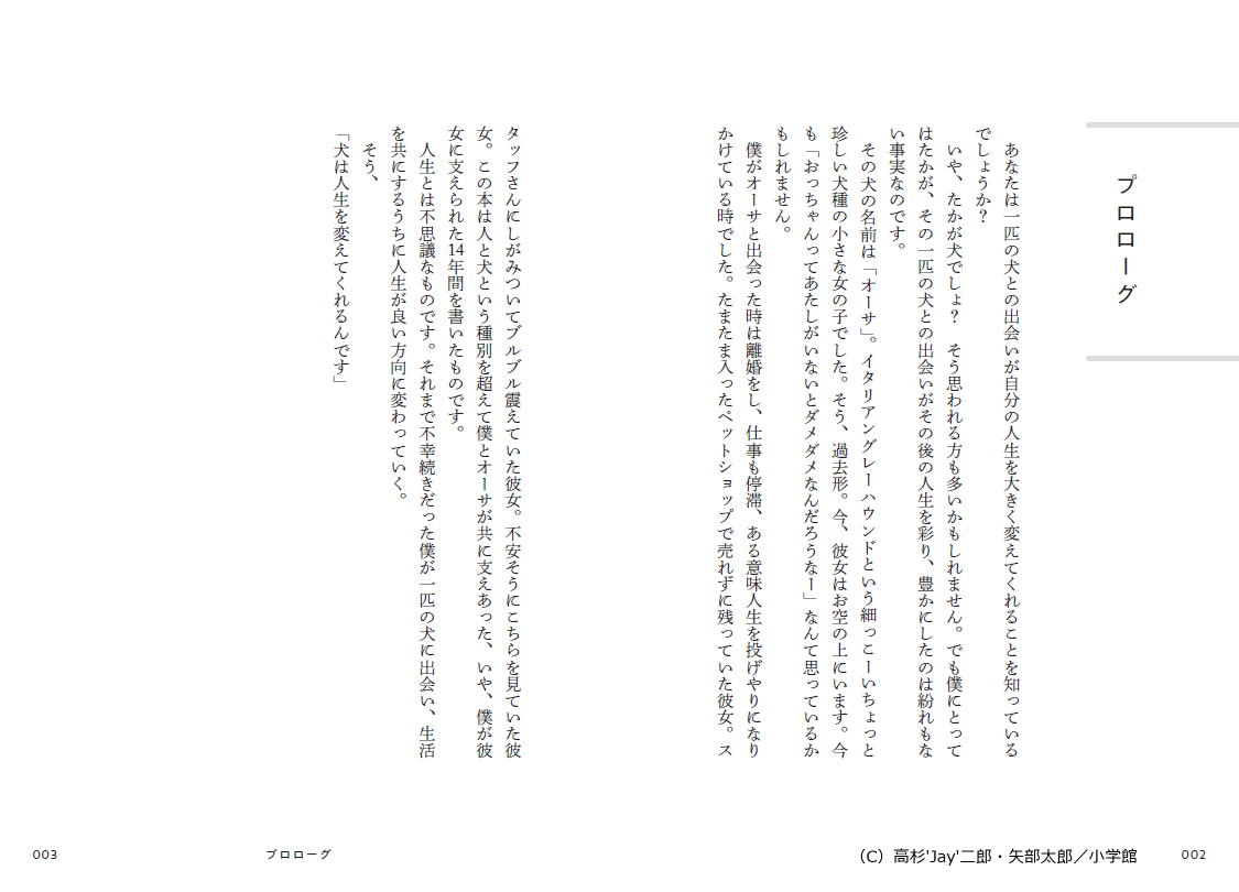 本作は、かつて失意のどん底にいた二郎さんを救ってくれた愛犬・オーサとの出会いから別れまでを綴った心あたたまるエッセイです。作品を彩る装画と漫画パートは、初めて描いた漫画『大家さんと僕』がミリオンセラーとなり手塚治虫文化賞短編賞も受賞した、芸人の矢部太郎さんが担当します。