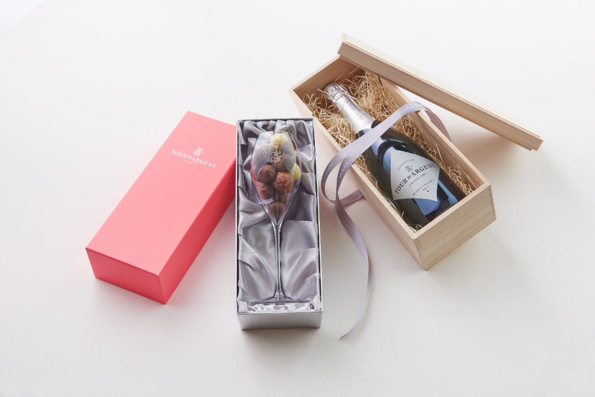 『トリュフショコラ セレブレーション』は、繊細なシャンパーニュの泡立ちを表現したエレガントなボンボンショコラ。黒トリュフ、プラリネ、フランボワーズの3種の季節豊かな味わいを閉じ込めた逸品は「トゥールダルジャン 東京」のロゴを配した特製のクリスタルグラスとセットで提供します。『シャンパーニュ トゥール ダルジャン ブリュット ブラン ドゥ ブラン』は、「トゥールダルジャン パリ」本店と世界で唯一の支店である東京店のみでご提供する、特別なオリジナルシャンパーニュ。心に残る特別な日のお祝いをより一層華やかに彩ります。優雅なひとときを演出する至高の一杯とともに、特別なホリデーシーズンお愉しみください。