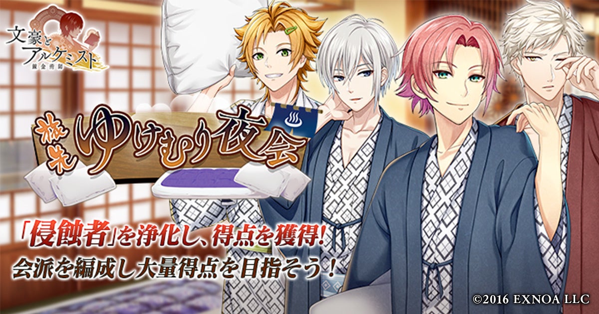 DMM GAMES『文豪とアルケミスト』イベント『調査任務「旅先ゆけむり夜会」』と限定召装「旅先ゆけむり夜会」を同時開催