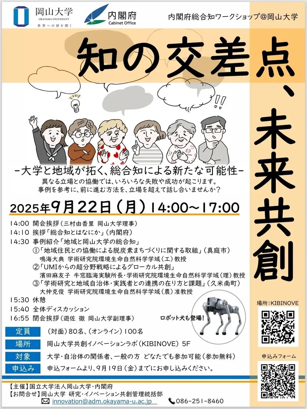 国立大学法人岡山大学(本部:岡山市北区、学長:那須保友)は、2025年9月22日、岡山大学津島キャンパスの共創イノベーションラボ(KIBINOVE:きびのべ)において、内閣府とともに「総合知ワークショップ~知の交差点、未来共創~」を開催しました。