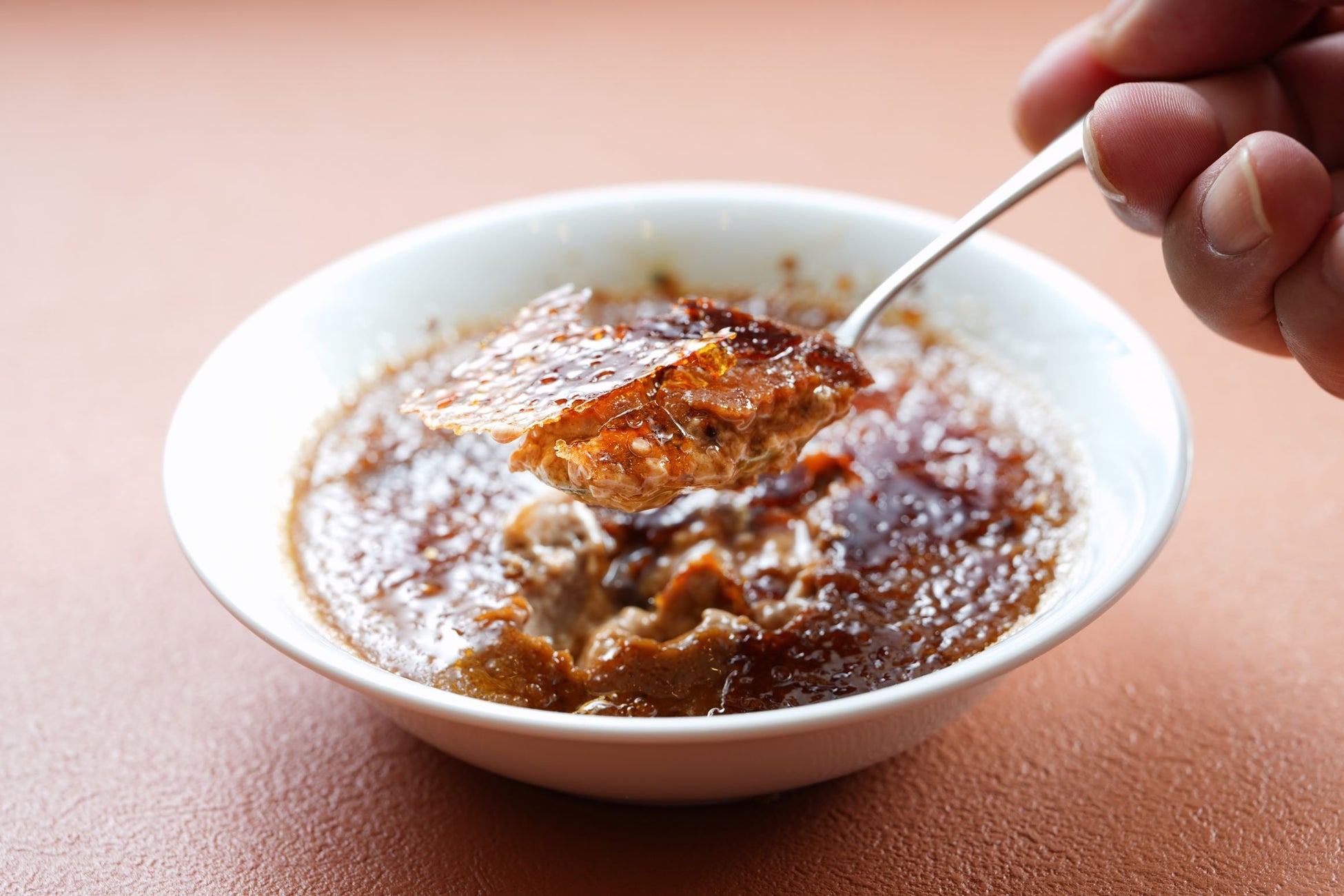 目の前でキャラメリゼする「ショコラブリュレ」は 、苺アイスまたはバニラアイスを添えて提供します。パリパリ食感のブリュレと冷たいアイスとの相性は抜群です。また、「ドゥーブルショコラ」は、ガトーショコラの上にホワイトショコラムースを重ね、さらにホワイトチョコレートでコーティングすることで見た目も美しく仕上げました。