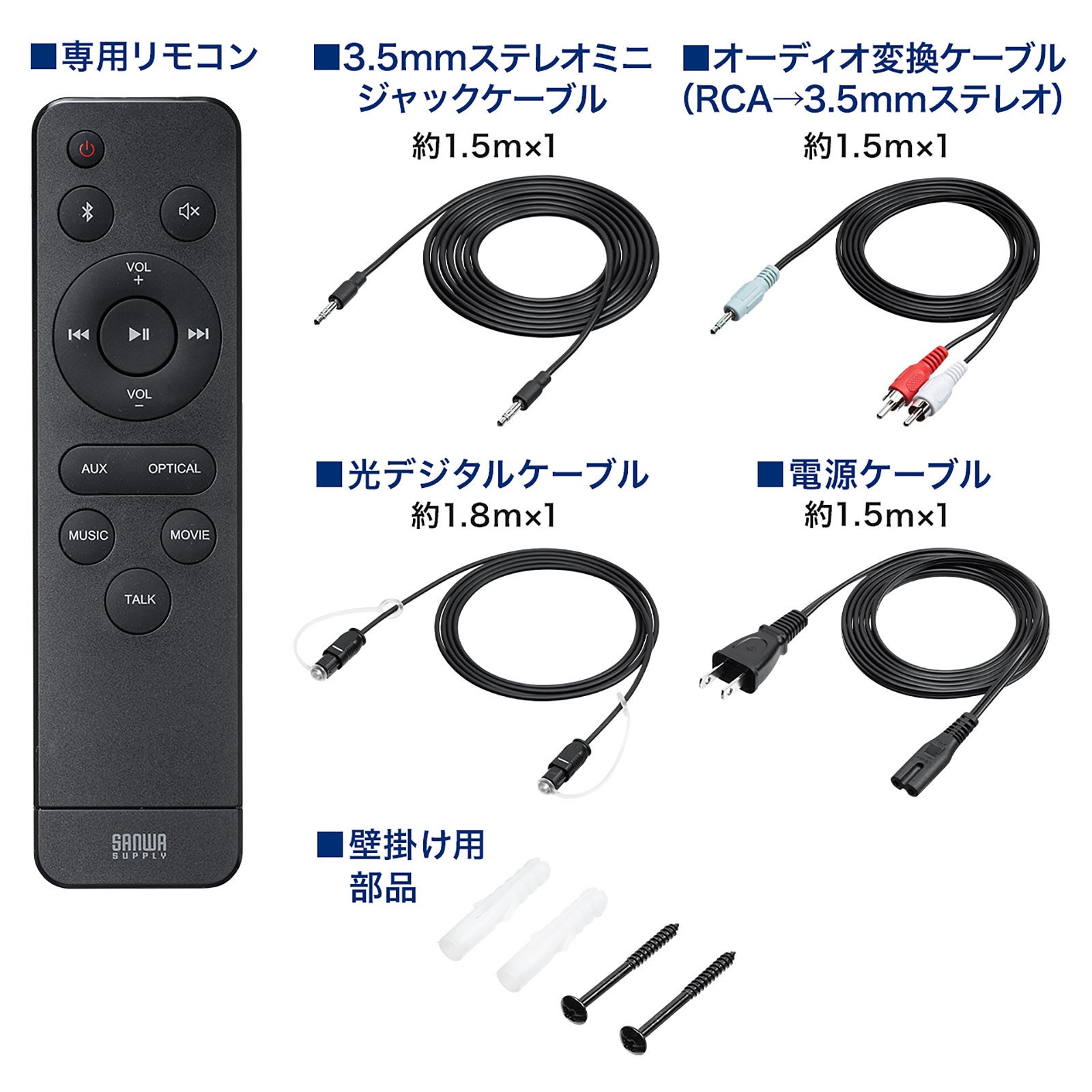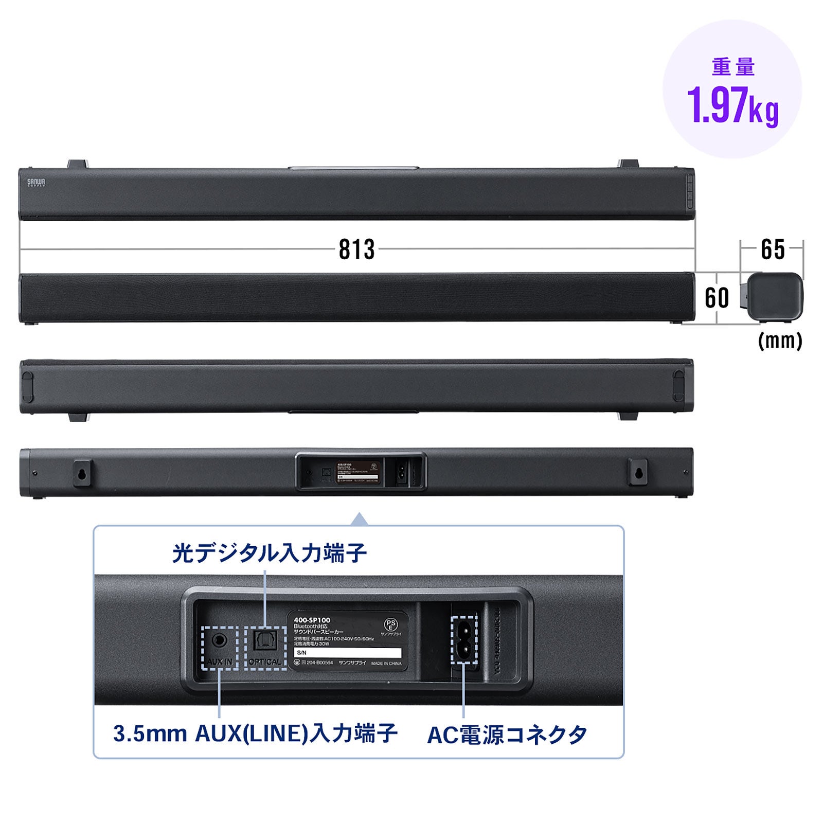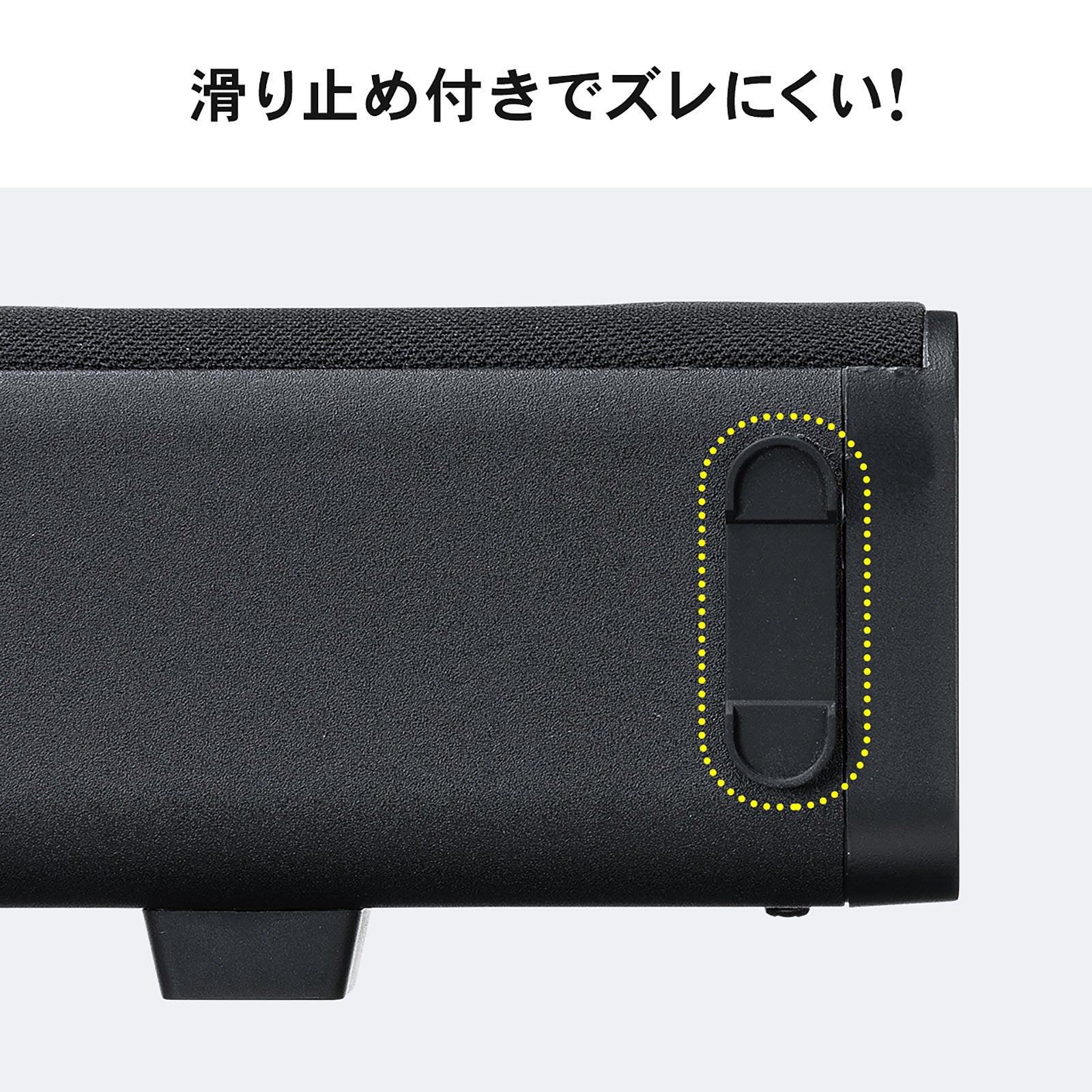 本製品は、テレビやパソコン用モニターの前に設置して、迫力あるサウンドを楽しめるサウンドバースピーカーです。
