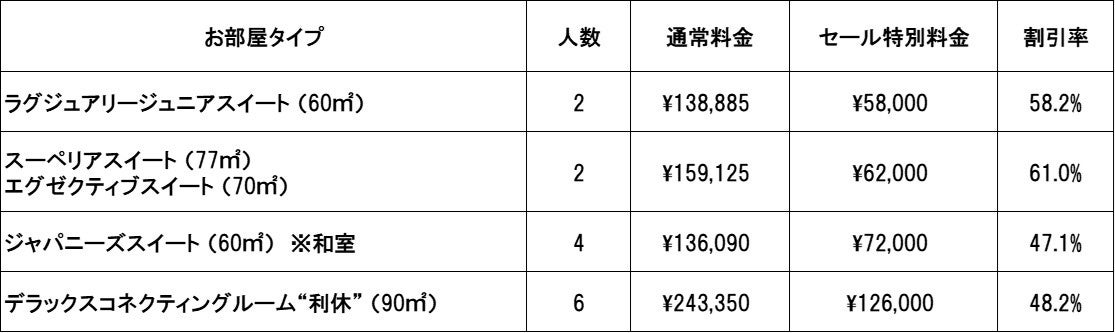 なかでもスイートルームは客室数にも限りがあるため早い者勝ちです!ご家族や大切な方、同僚たちと過ごすかけがえのない時間にご活用ください。