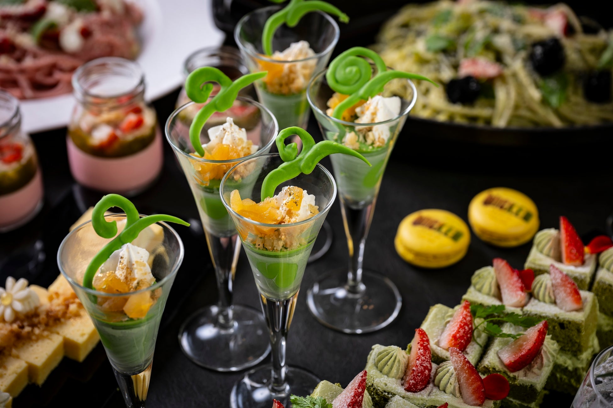 本コラボレーション企画では、コラボレーションルームステイプランをはじめ、映画の物語を表現したストロベリー&抹茶スイーツブッフェ、オリジナルパフェ、さらにカクテルをご用意。ステイプランからスイーツ、カクテルに至るまで、映画『ウィキッド 永遠の約束』の世界観をさまざまなコンテンツでお楽しみいただけます。
