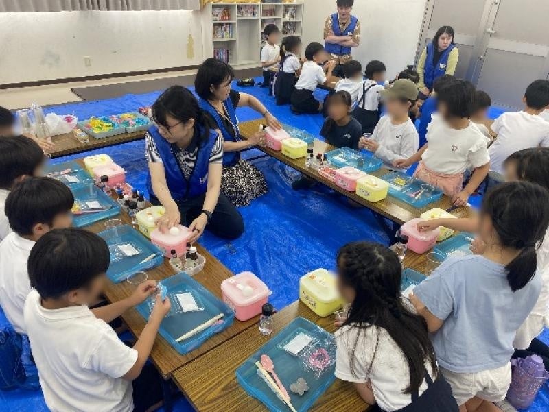 事前に申し込みがあった同クラブに通う小学生42人が参加し、「ペットボトル万華鏡を作ろう」、「スライムで遊ぼう」、「入浴剤を作ろう」の3つのテーマを、グループに分かれて順番に体験しました。