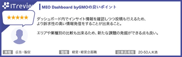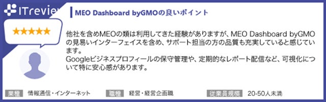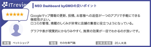 - 【「ITreview」に寄せられた「MEO Dashboard byGMO」利用者の声(一部抜粋)】