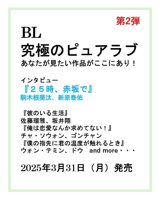 『BL 究極のピュアラブ』あなたが見たい作品がここにあり! 第2弾コンテンツ発表!! 『25時、赤坂で』駒木根葵汰、新原泰佑 インタビュー掲載決定