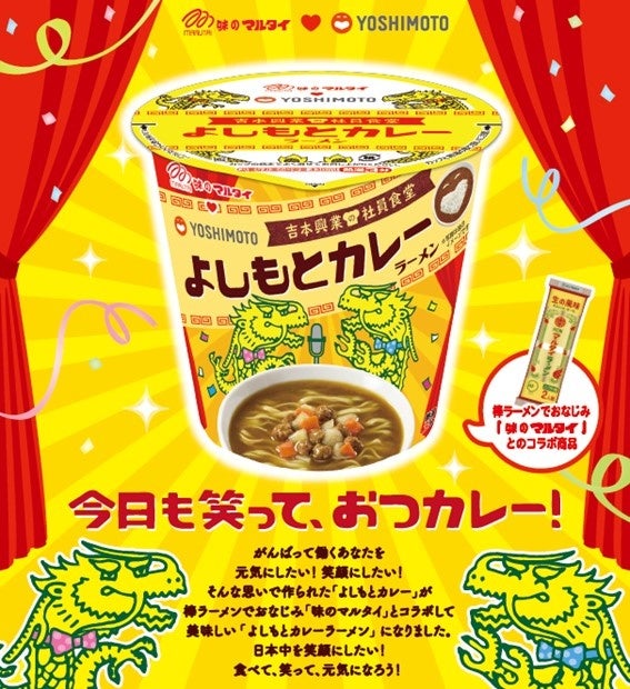 吉本興業東京本部にある社員食堂で、最も人気の高いメニュー「よしもとカレー」と棒ラーメンでおなじみの「マルタイ」とのコラボレーション商品 『よしもとカレーラーメン』 が完成し、10月7日(月)に全国発売されます。