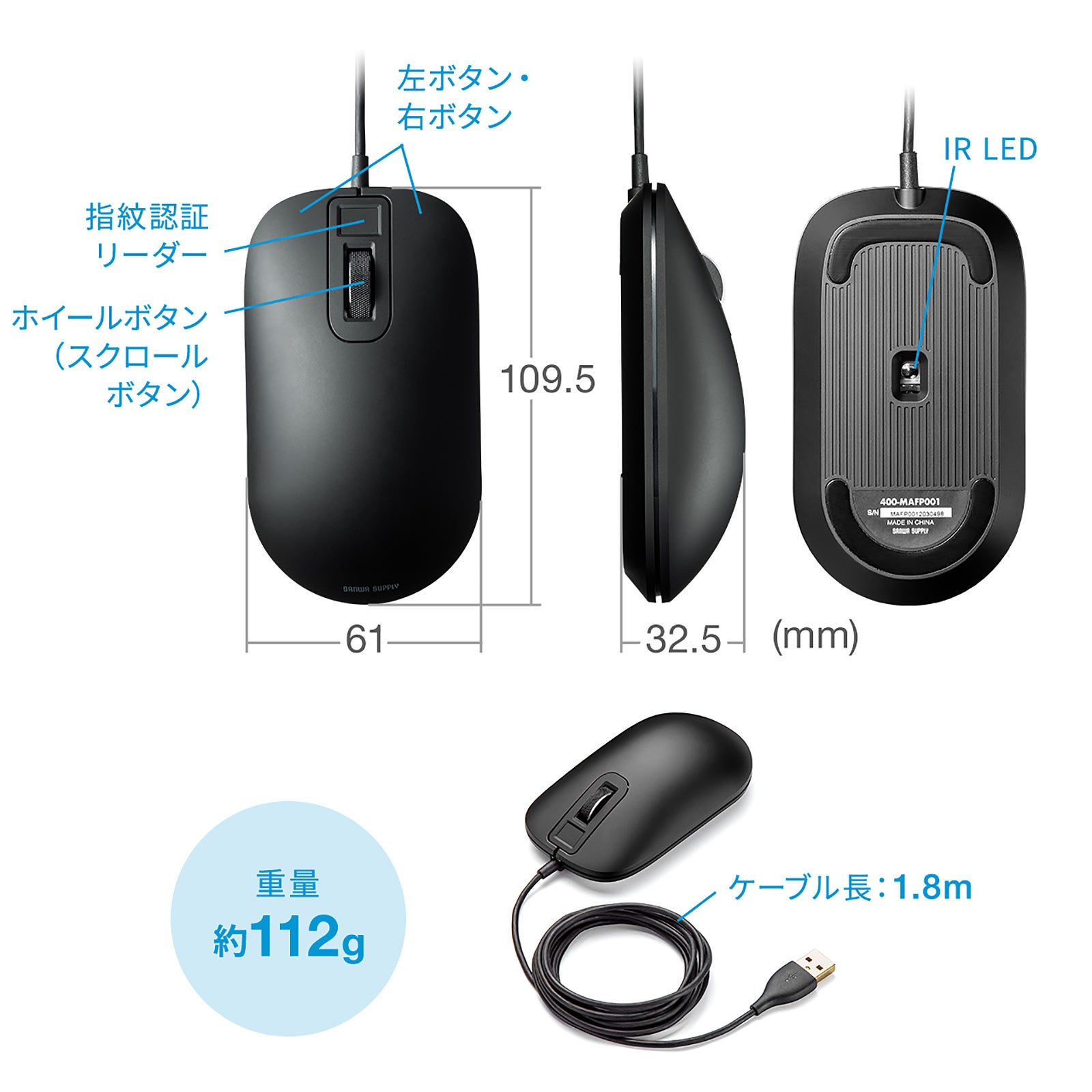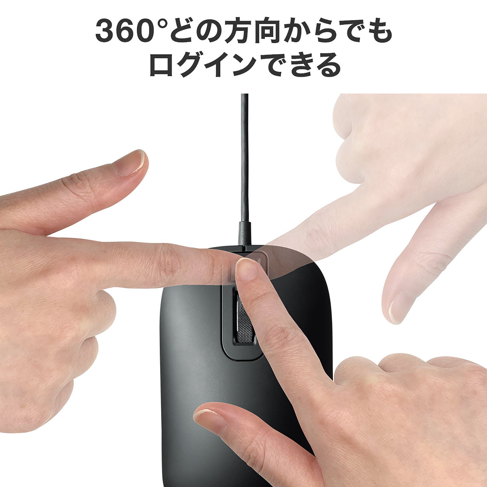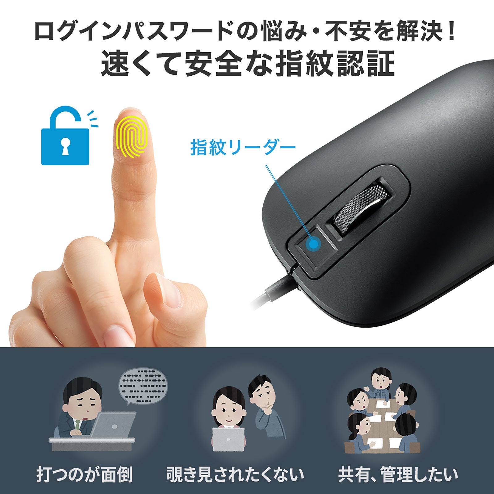 指紋認証マウス Windows Hello対応 有線マウス IRセンサー 3ボタン 1600dpi Windows専用 ブラック