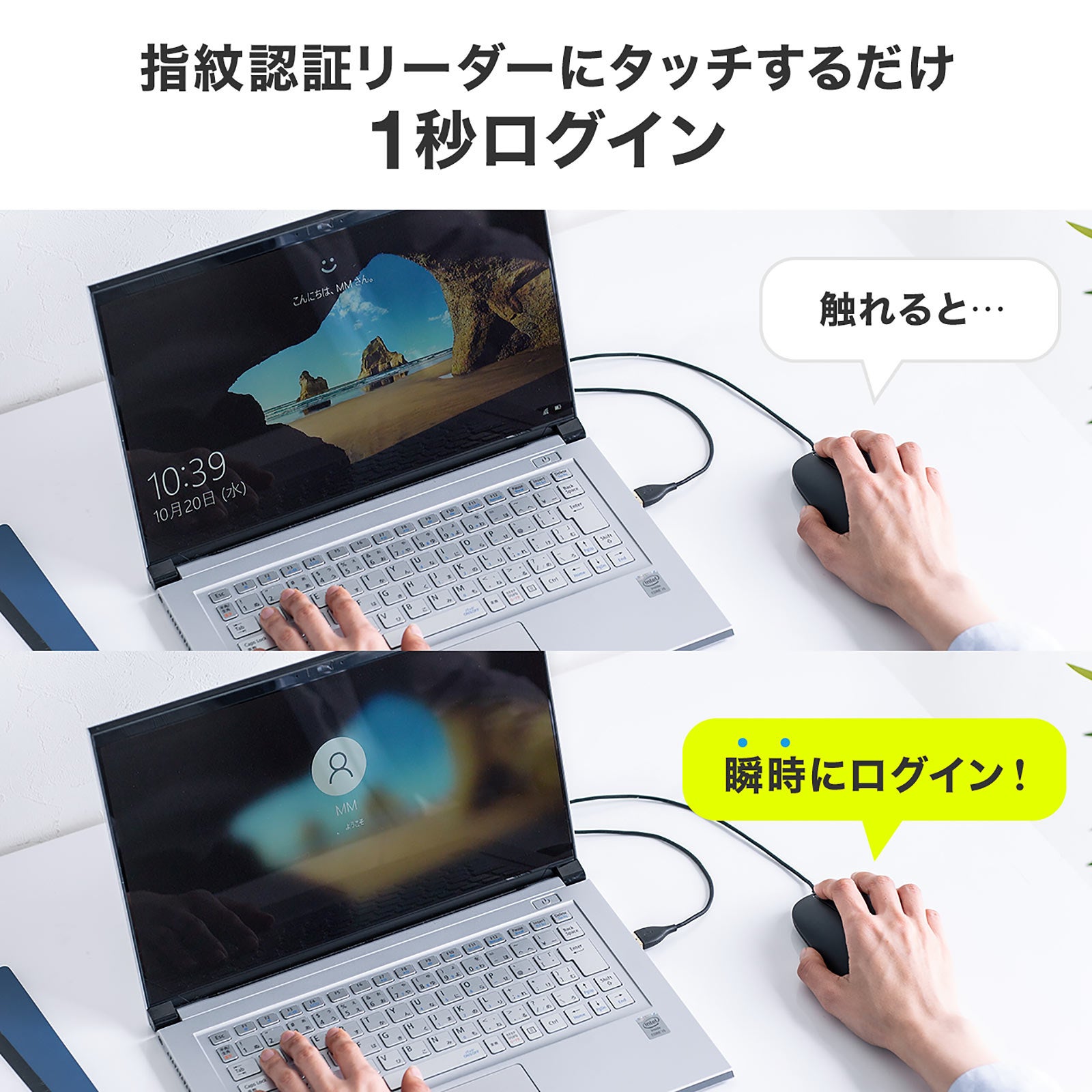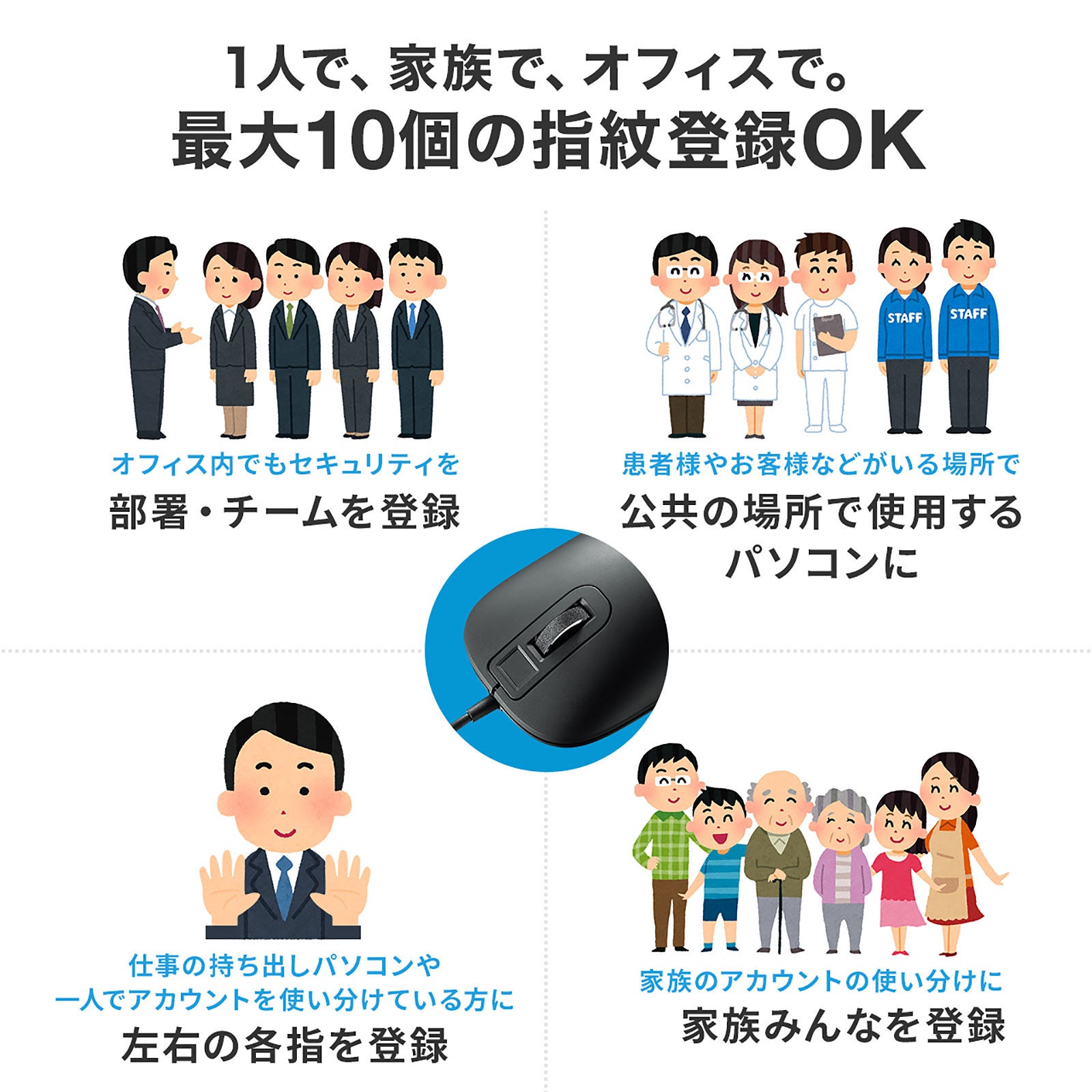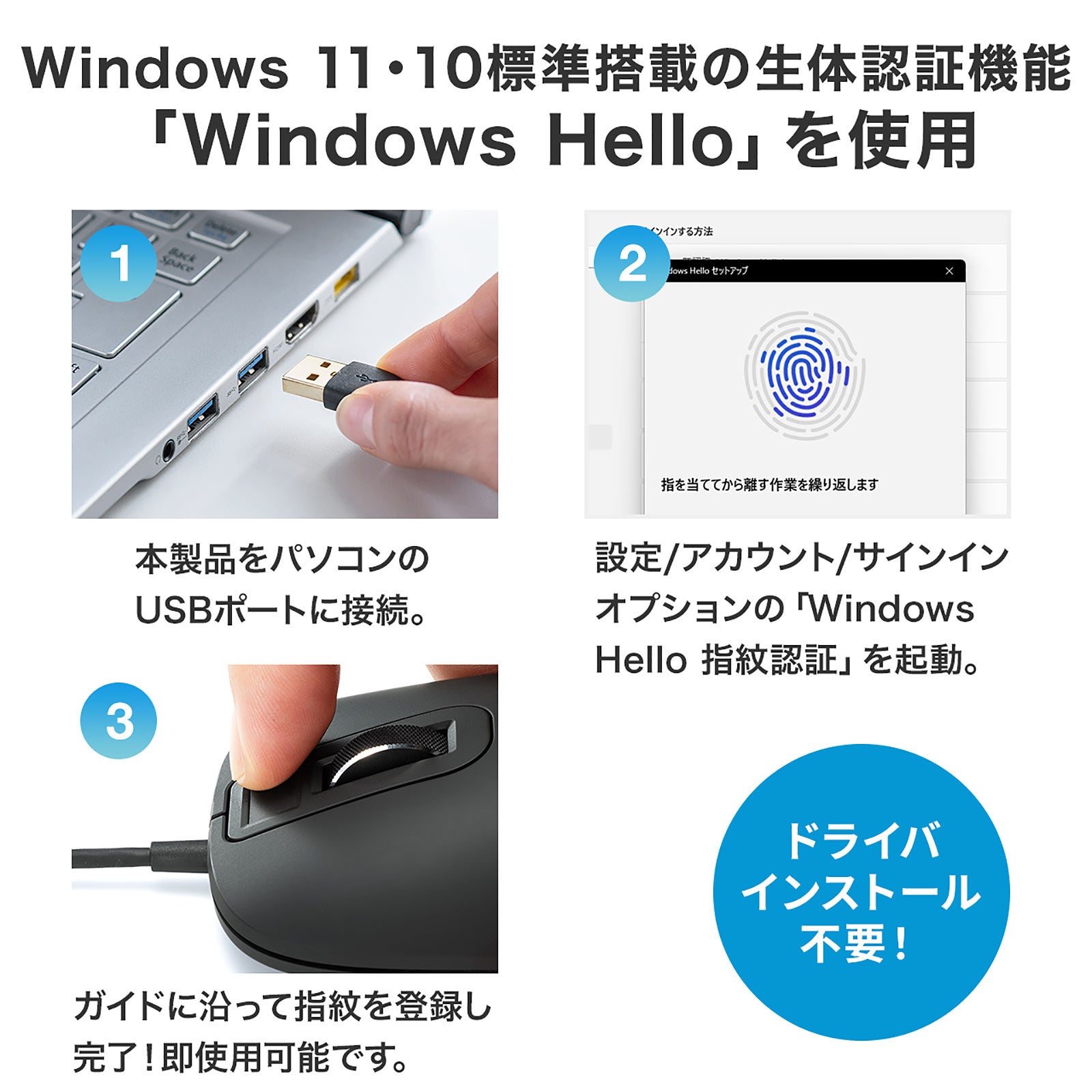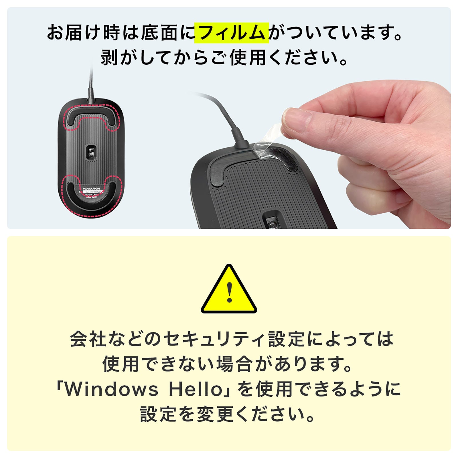 指紋認証マウス Windows Hello対応 有線マウス IRセンサー 3ボタン 1600dpi Windows専用 ブラック