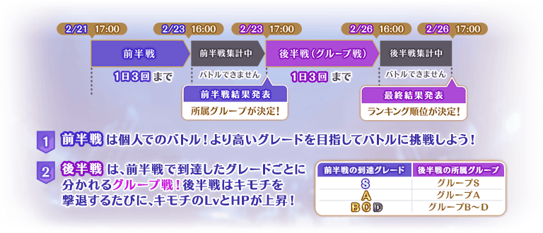 イベントの開催期間は、前半戦と後半戦の2部で構成されます。