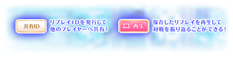 また、保存した対戦はリプレイIDを発行することができ、他プレイヤーであっても、リプレイIDを入力することで、対応する対戦のリプレイが視聴できます。