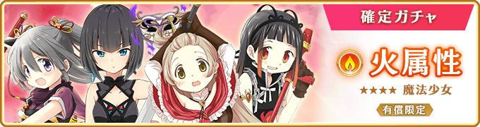 本ガチャでは、対象の火属性★4魔法少女のうち、いずれか1体が確定で登場いたします。
