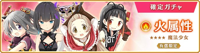本ガチャでは、魔法少女の登場時に火属性の魔法少女が確定で登場いたします。