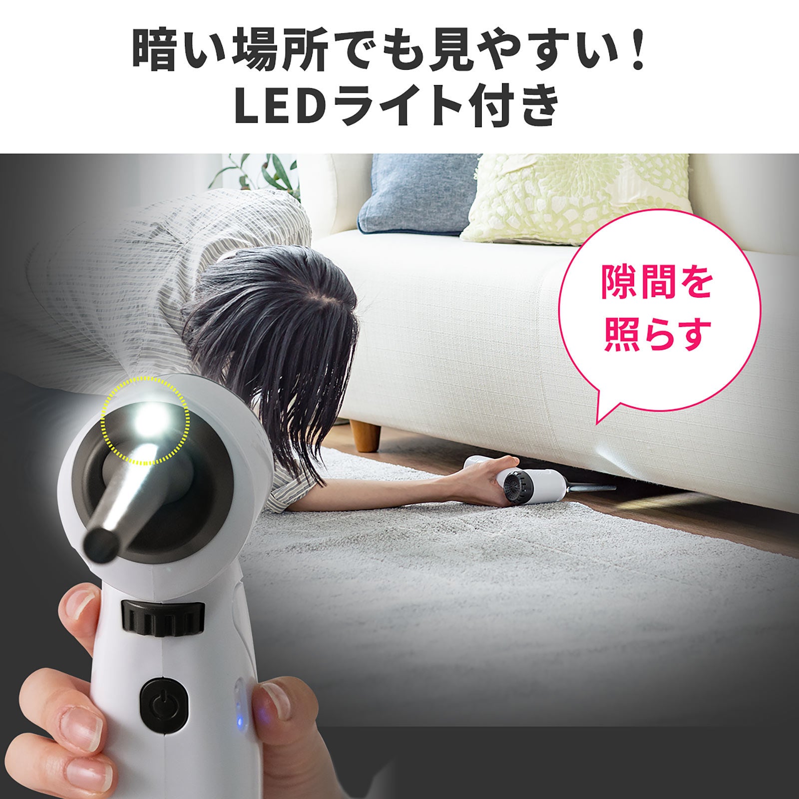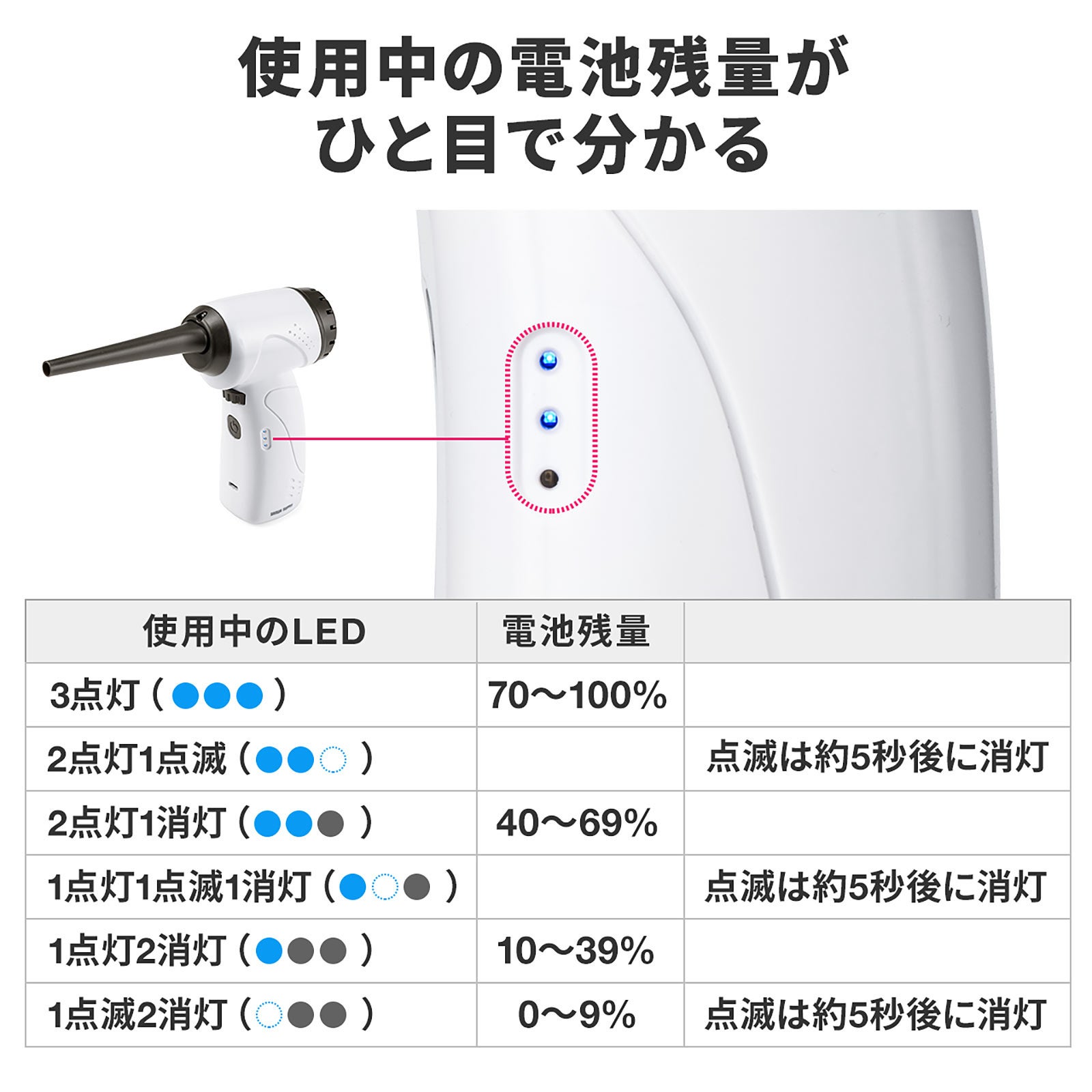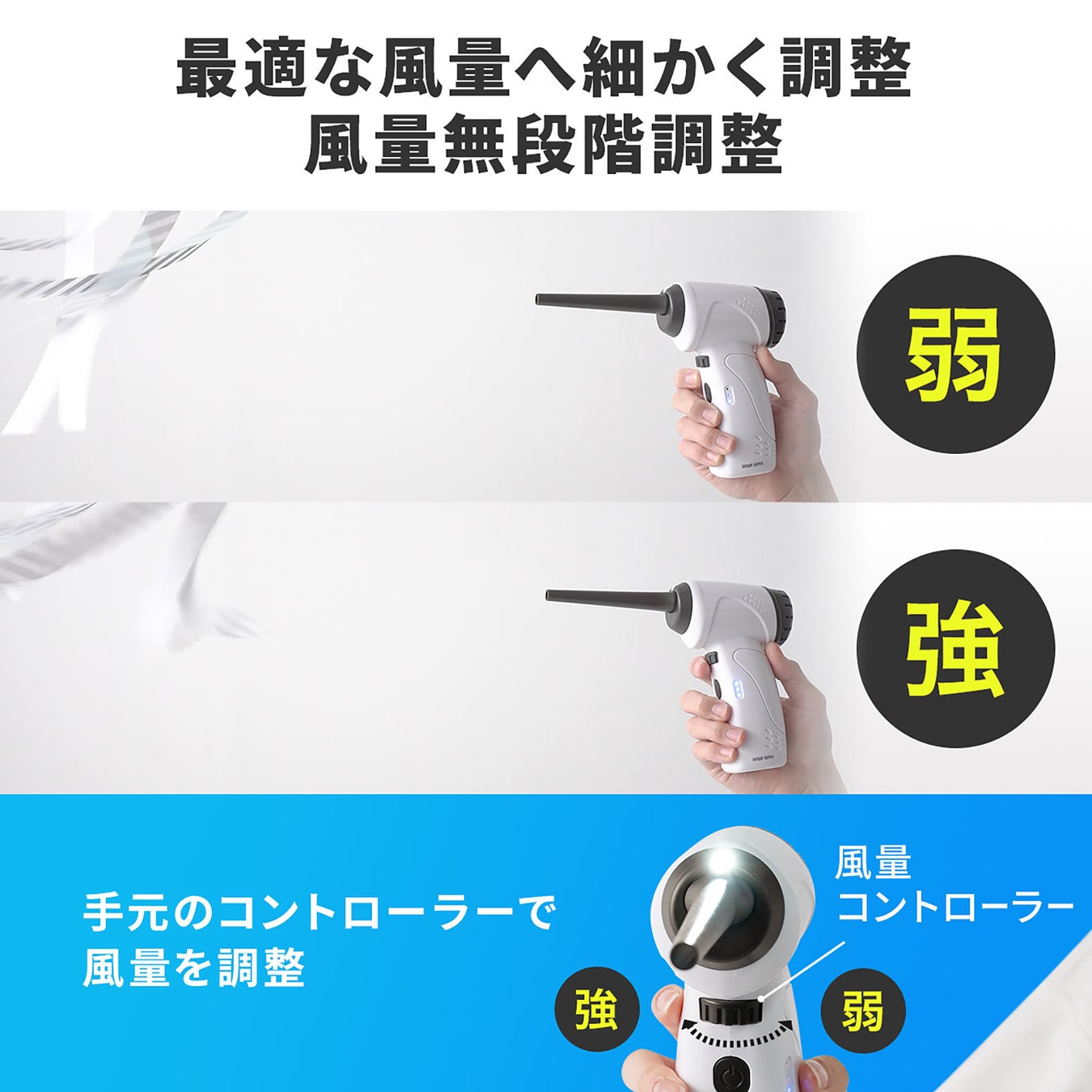 電動エアダスター 充電式 無段階風量調整 LEDライト付 ガス不使用 ノズル付き