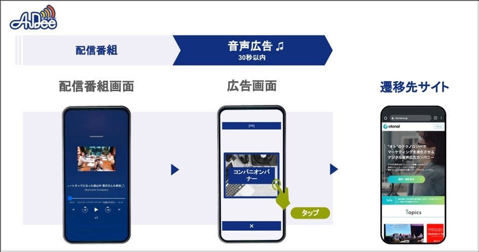 またアドサーバーやSSP、音声CMSといった音声のアドテクノロジー提供を通じて、音声アプリやラジオ局などへのデジタル音声広告の実装サポートを行っています。新たな音声メディア・音声広告枠の開発の取り組みを通じて国内における音声広告市場創出への取り組みを続けています。