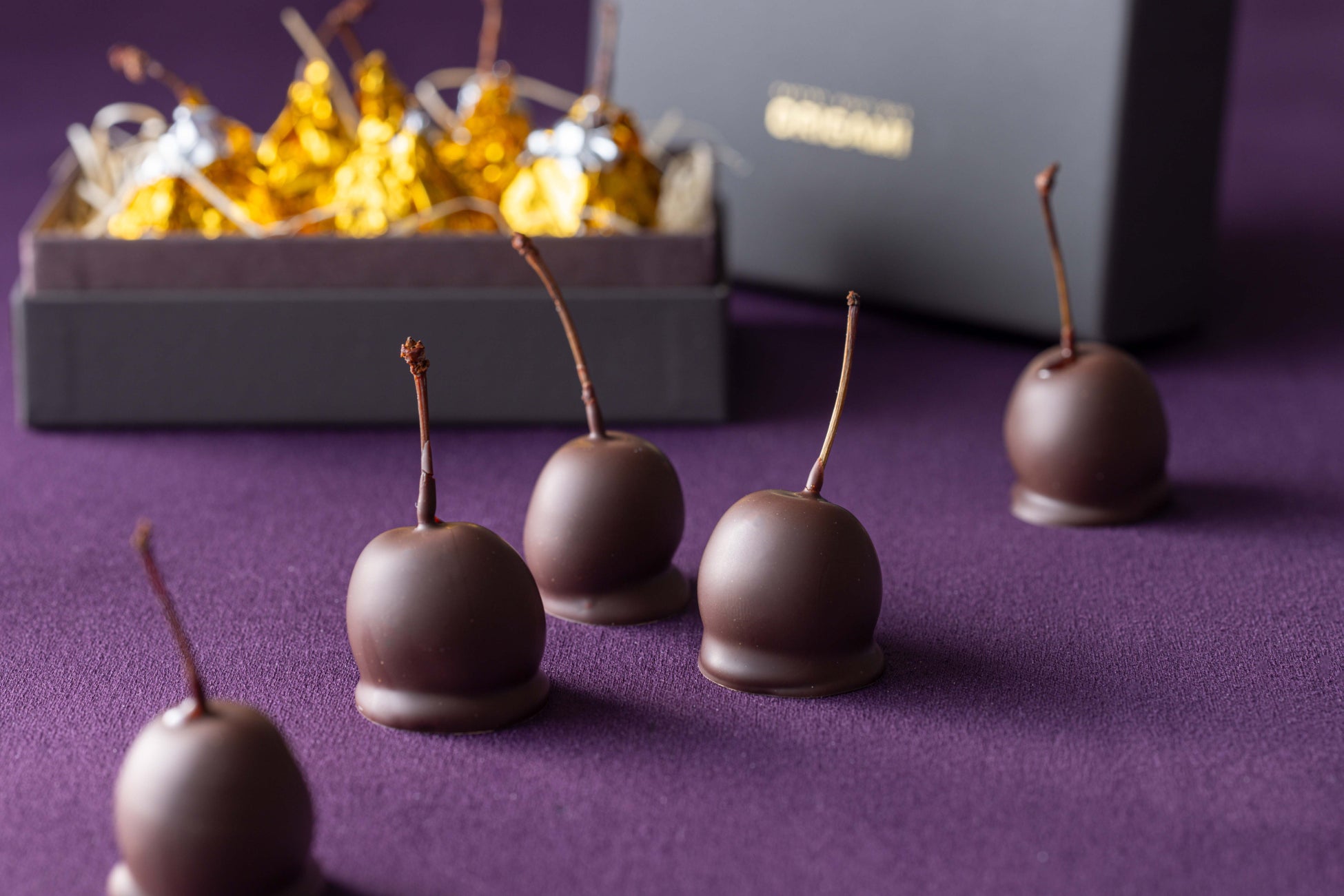 約半年間じっくりとブランデーに漬け込んだ大粒のアメリカンチェリーを、滑らかなフォンダンで包み込み、ビターチョコレートで丁寧にコーティングしました。瑞々しいチェリーと深みのあるブランデーの香りが、濃厚なチョコレートと絶妙に調和し、贅沢な味わいを引き立てます。時間とともに変化する食感の奥行きも魅力的な、大人のための極上スイーツです。
