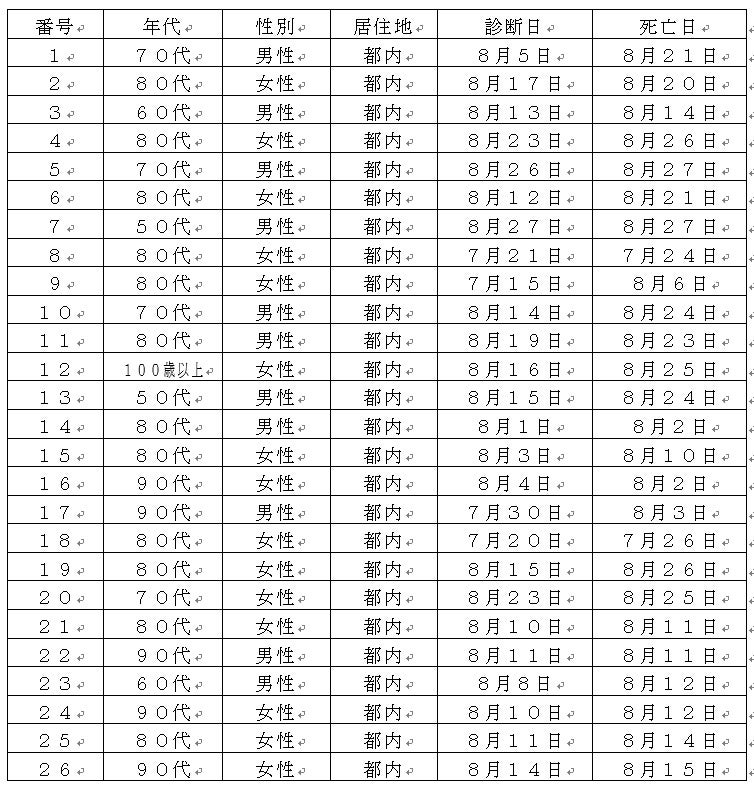 都内で新型コロナウイルスに感染した方が死亡されましたのでお知らせします。お亡くなりになった方のご冥福をお祈り申し上げます。