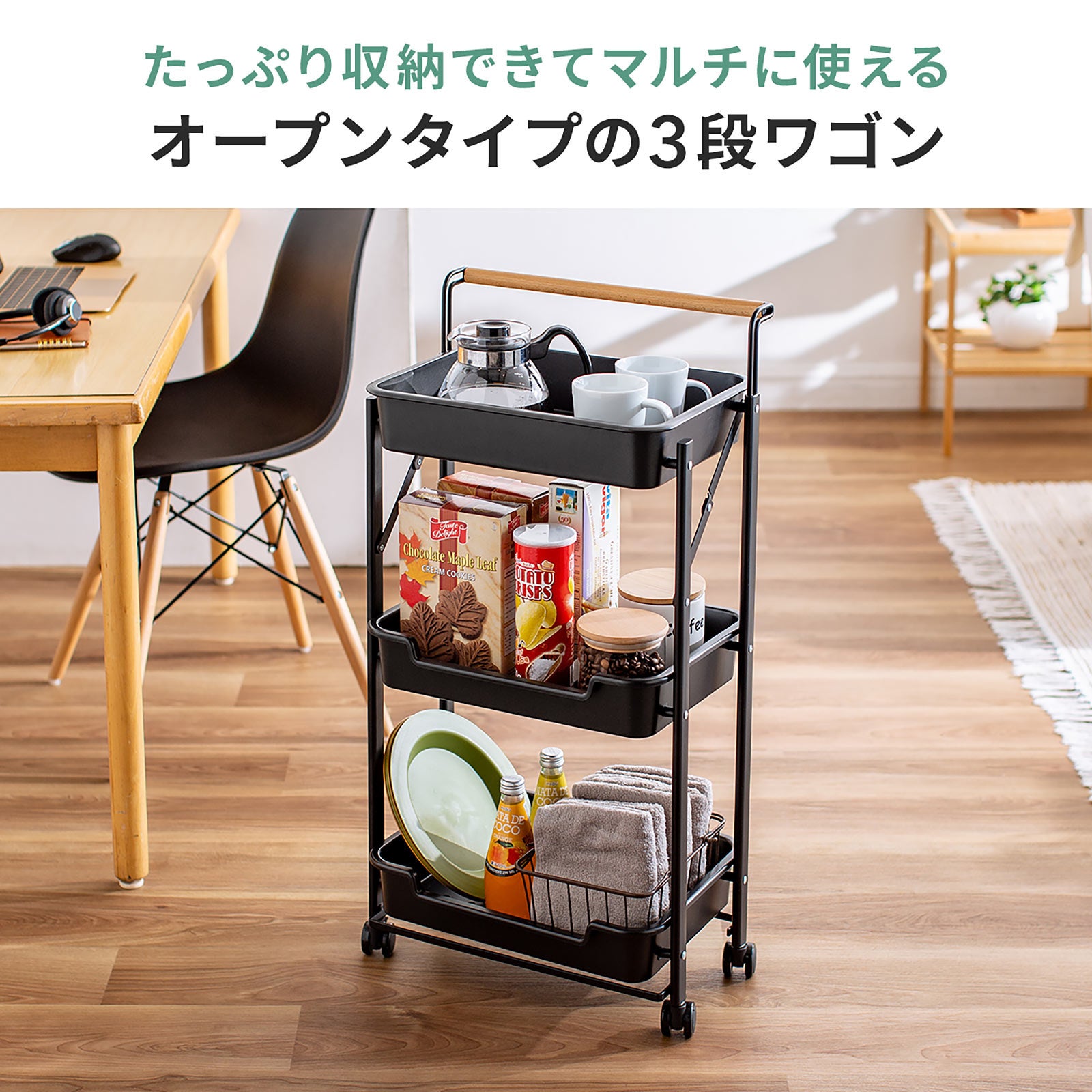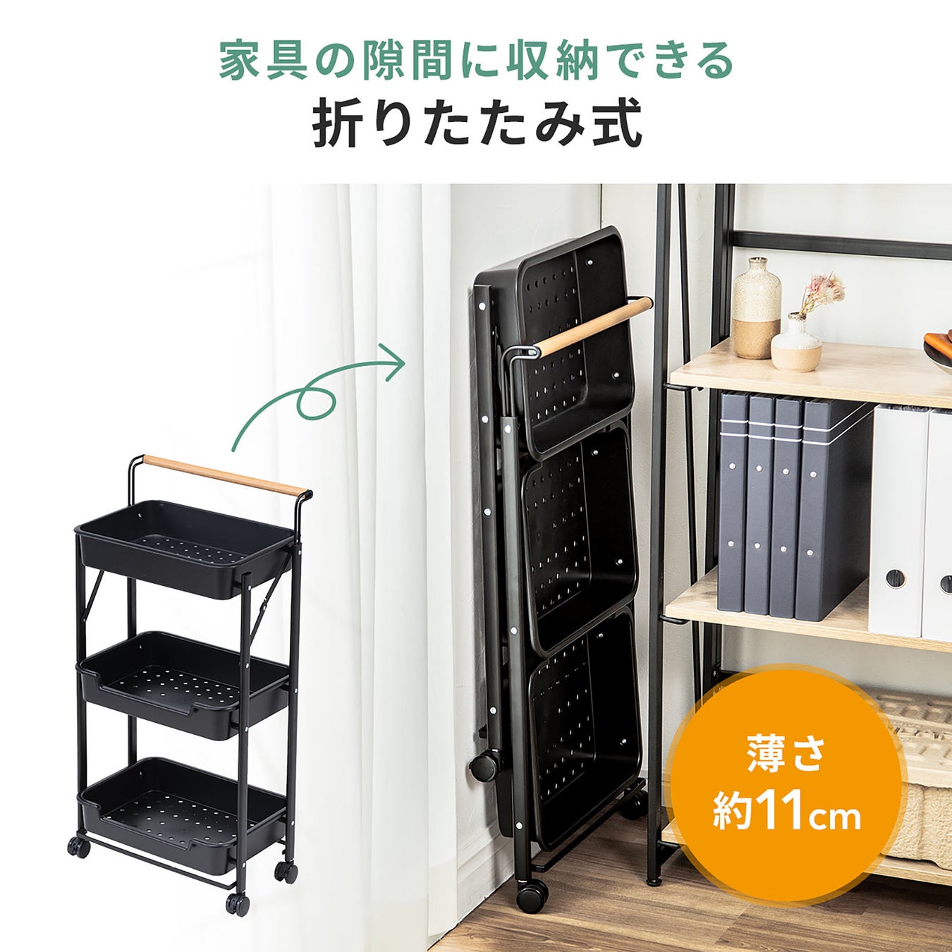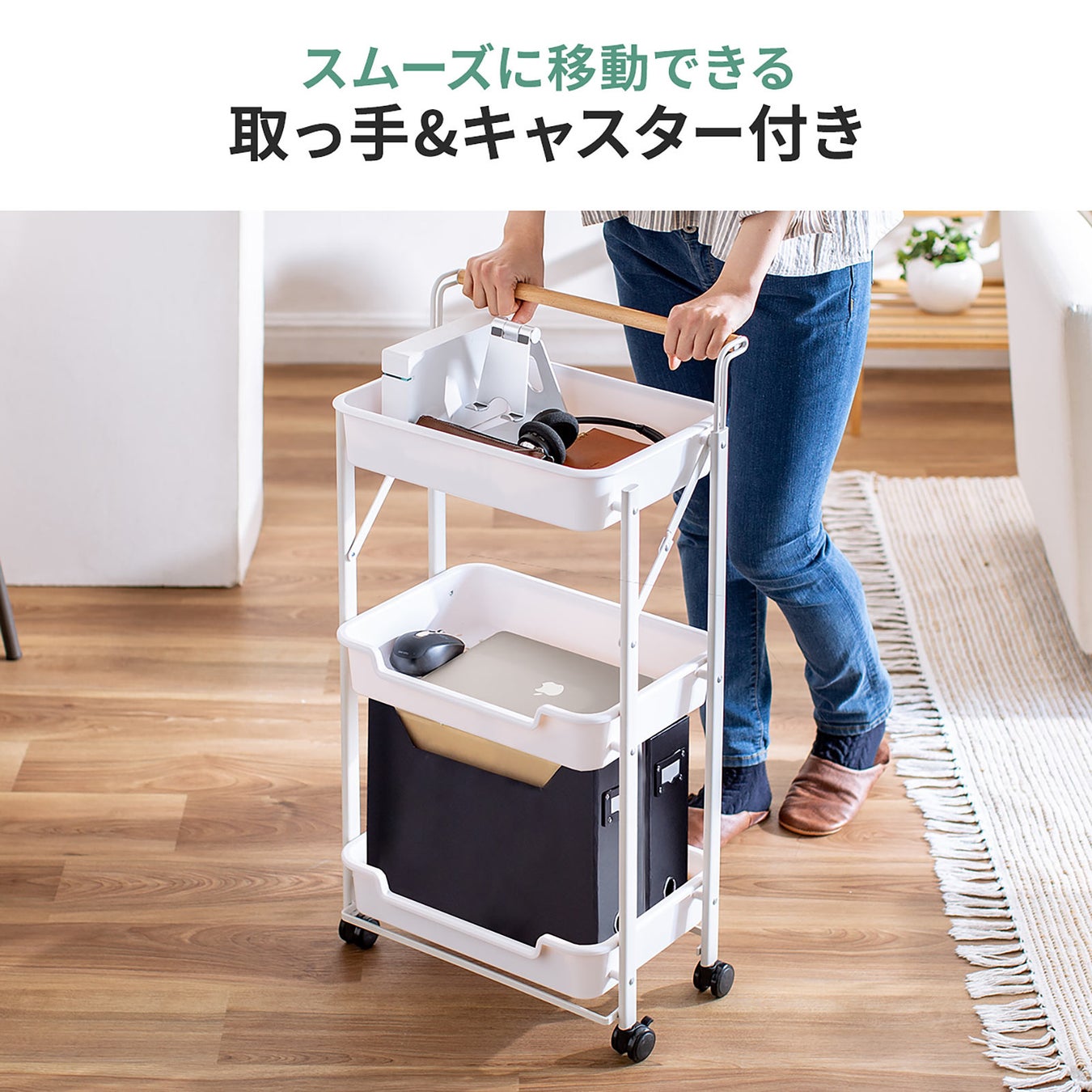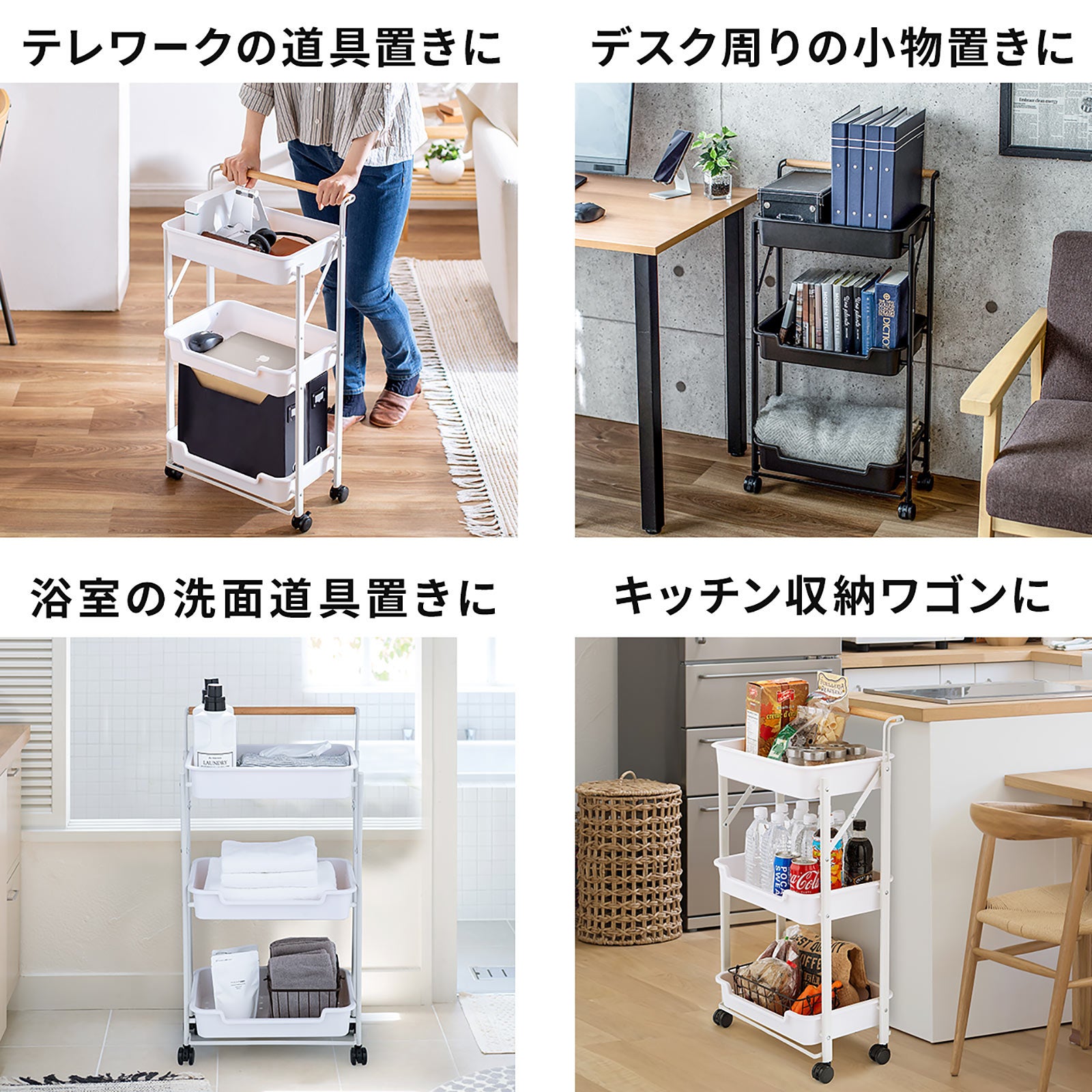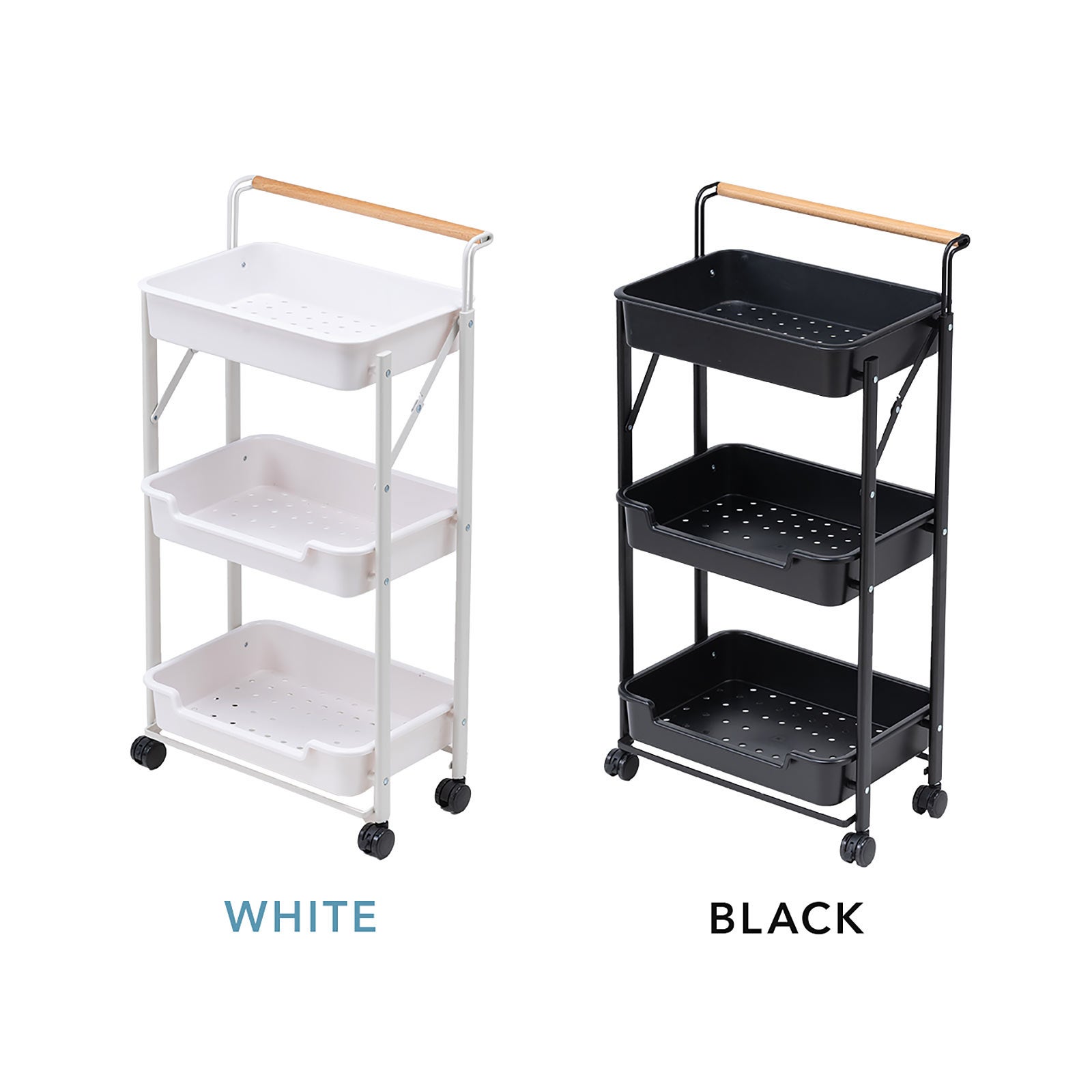 折りたたみ可能な3段式キャスター付きワゴン ブラックとホワイトの2色を3月10日発売