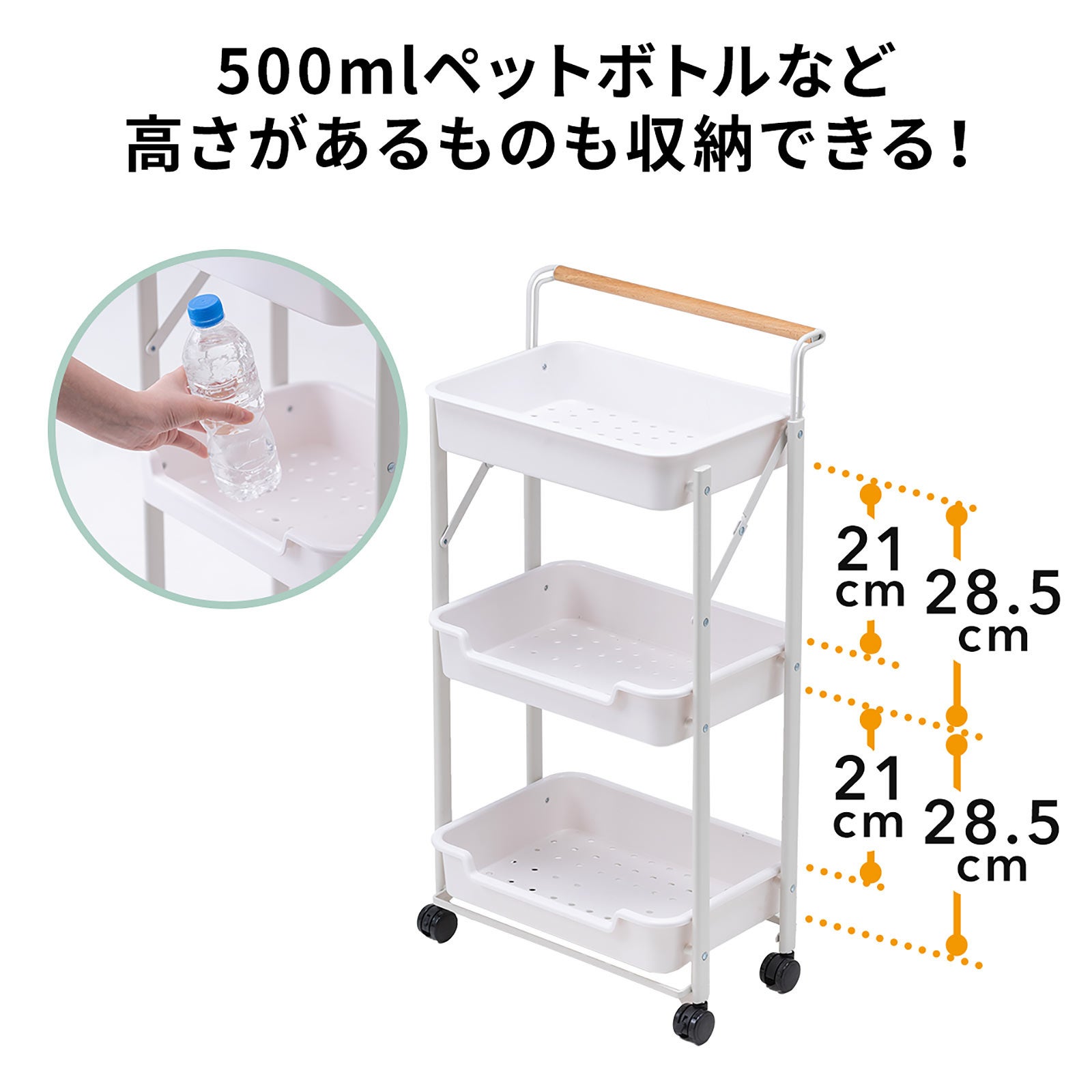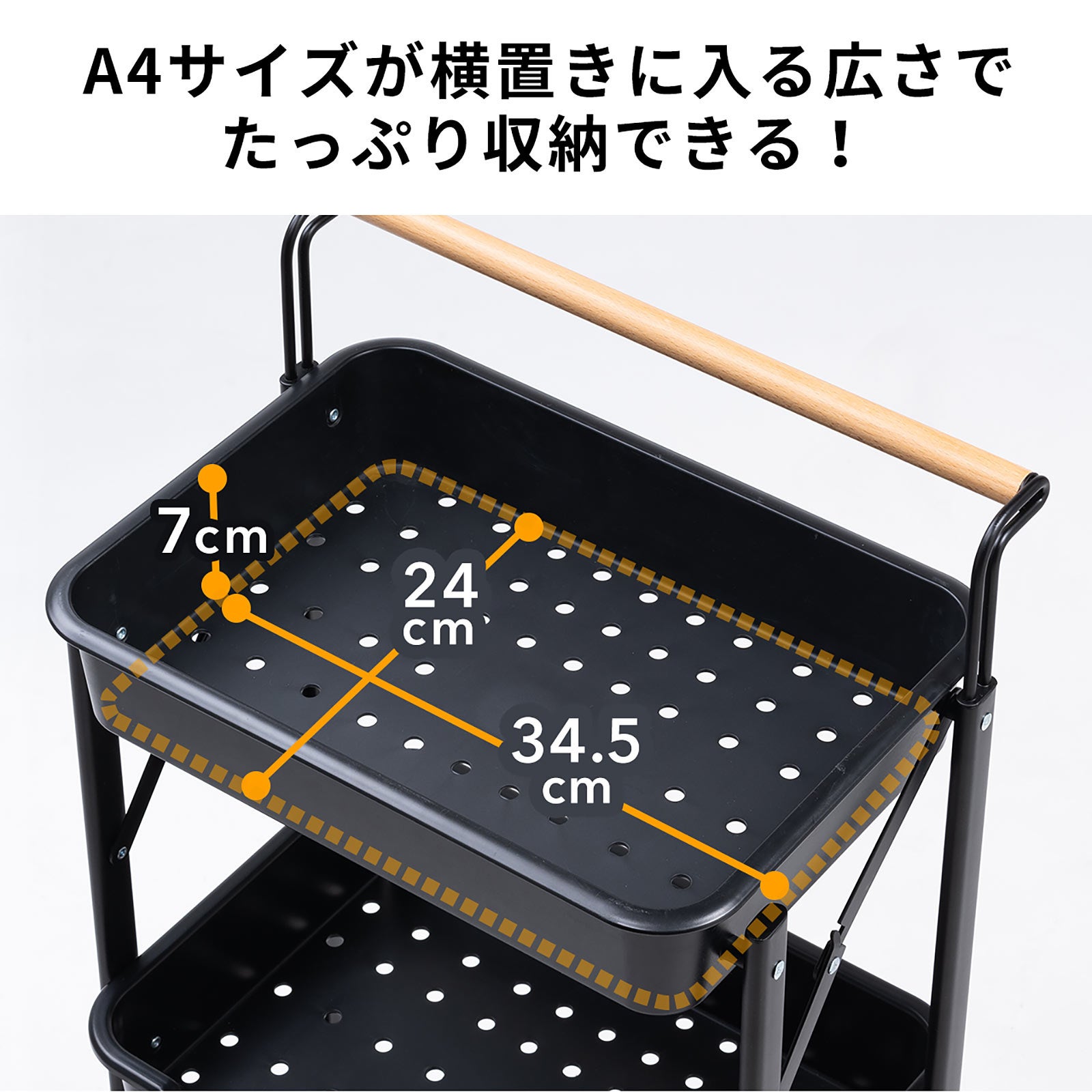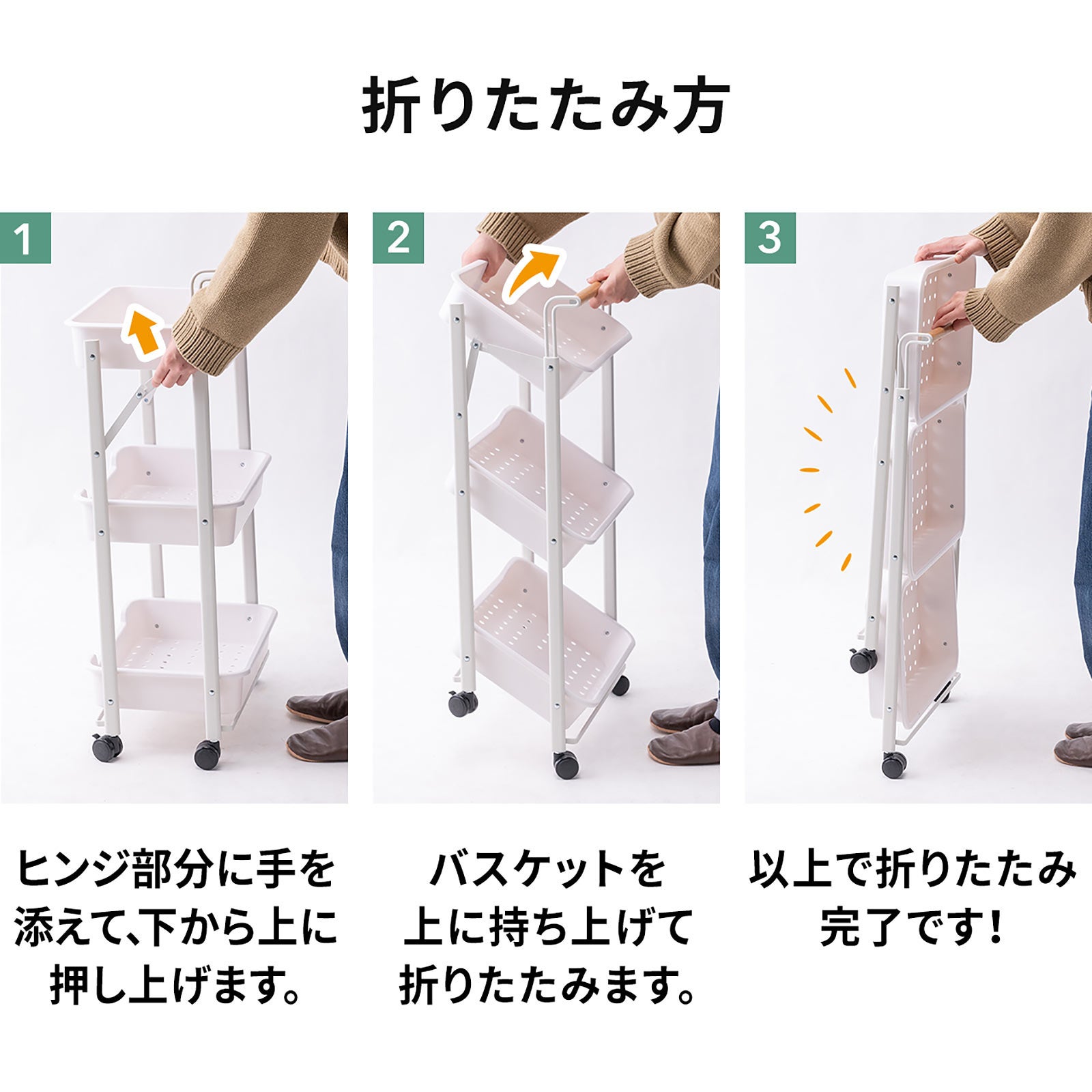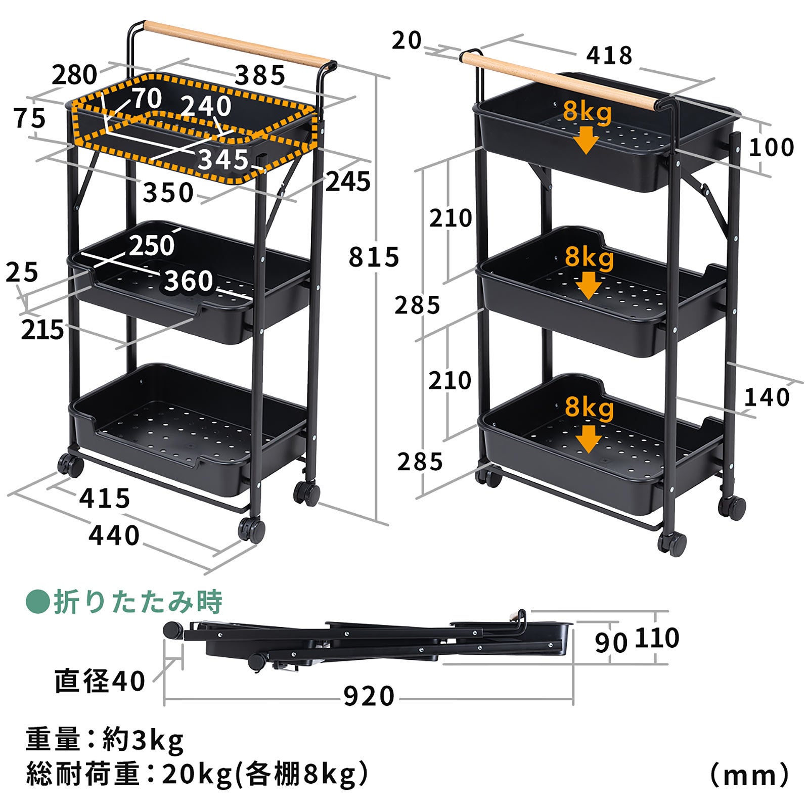 本製品は、軽量で、使わない時に折り畳める3段式折りたたみワゴンカートです。