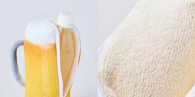 まるでビール!? きめ細かい泡まで本物そっくりに再現した「ペットボトルカバーにもなる 癒やしの生ビールポーチ」が新登場