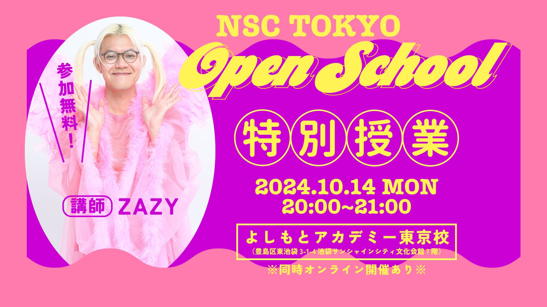 内容:ZAZYよる、NSC・芸人に関してのトーク!質疑応答時間もあり、気になることをこの機会に何でも聞けます。