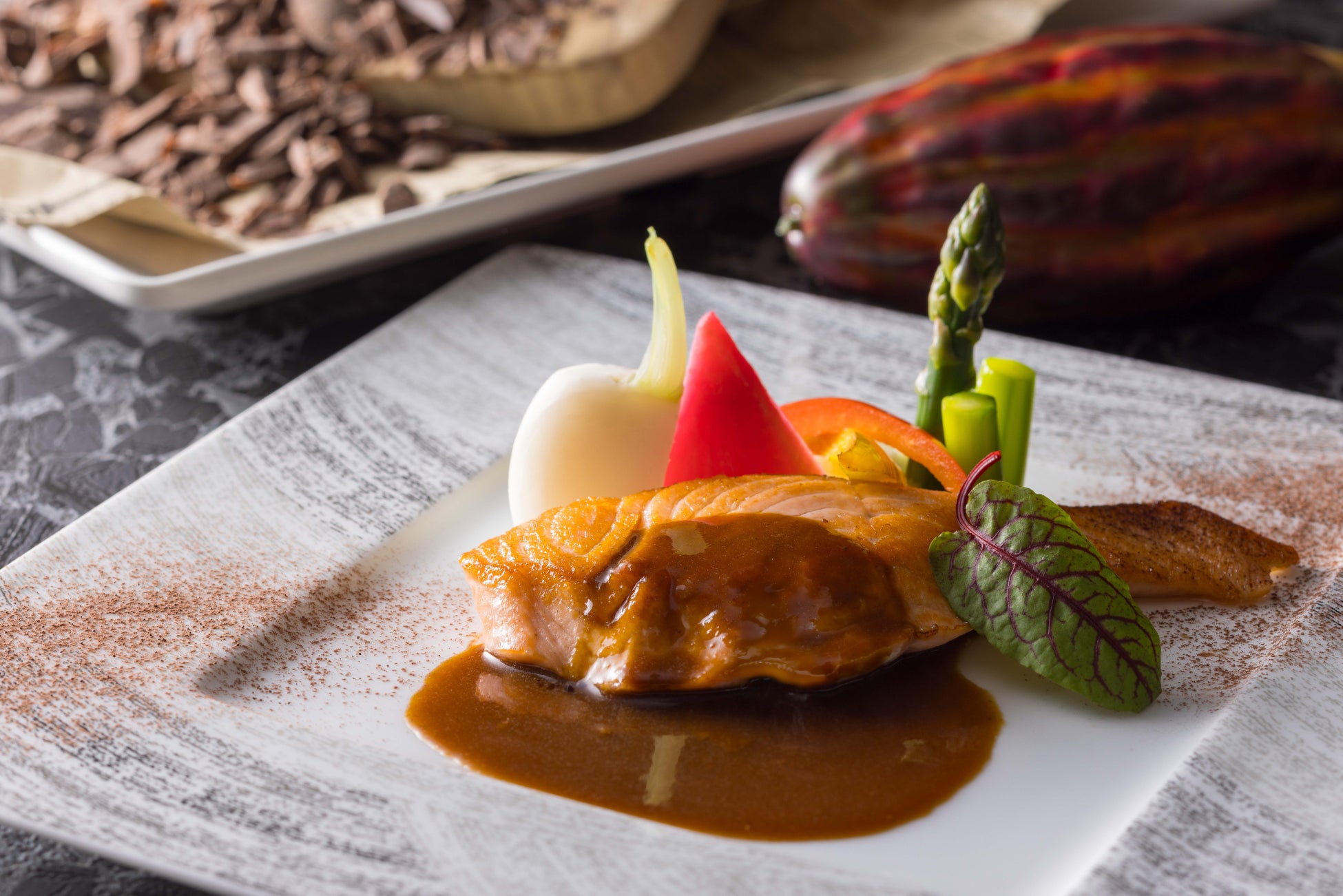・アトランティックサーモンのポワレ 八丁味噌ソース カカオのアクセント