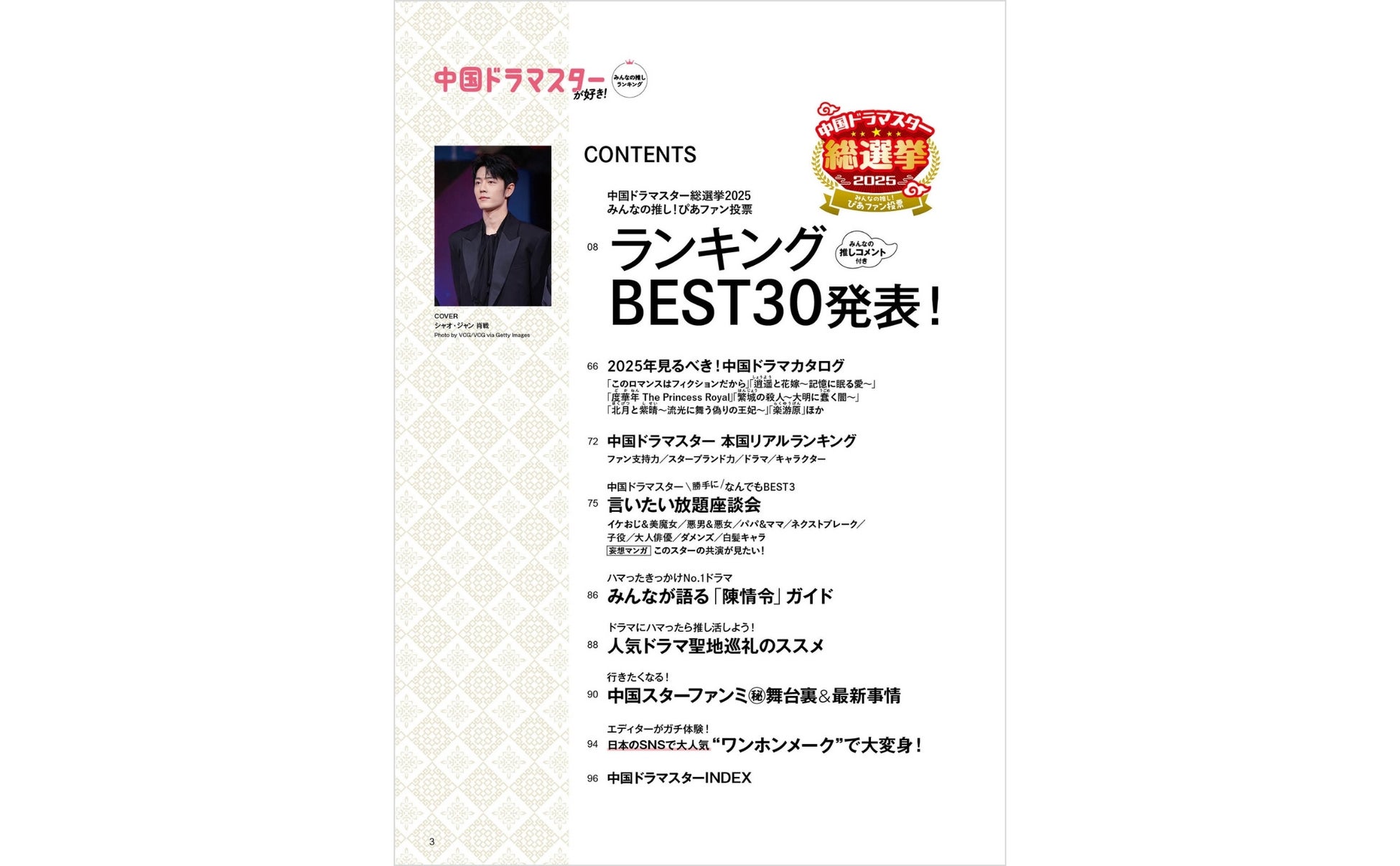 さらに、中国本土での各種リアルランキングや編集部独自の切り口による妄想ランキング、ファン目線であらためて推しの魅力を語り明かす座談会企画を掲載する他、大ヒットドラマの聖地巡礼ガイドや中国スターのファンミーティング(秘)舞台裏&最新事情、日本で体験できる中華風「ワンホンメーク」の体験リポートなど、みんなの推し活が充実する企画盛りだくさんの内容でお届けします。