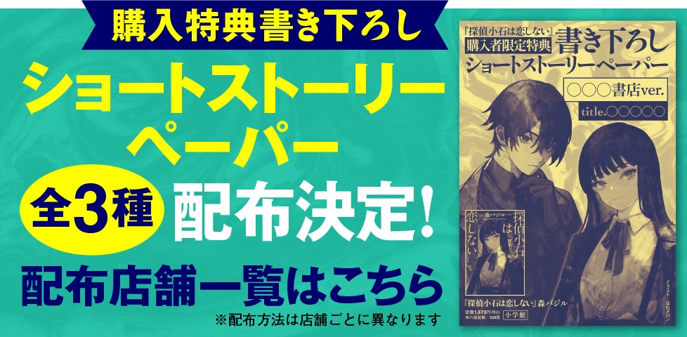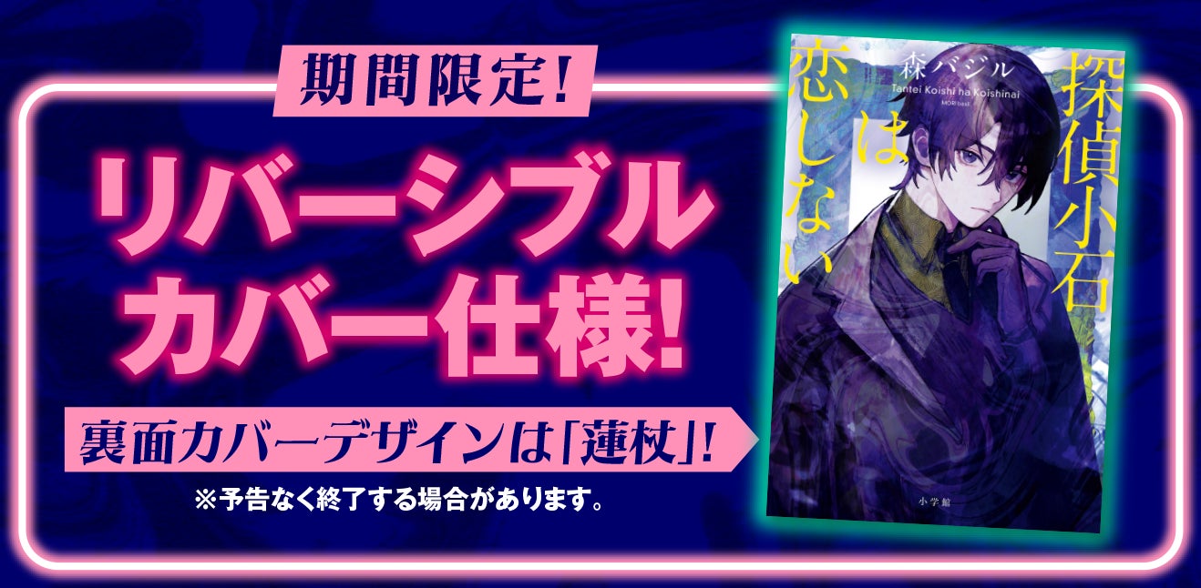 探偵・小石と調査員・蓮杖のバディによる掛け合いが本書の魅力の一つであることから、表が小石、裏が蓮杖の期間限定リバーシブル仕様で発売中。さらに一部書店さまでは購入特典ショートストーリーペーパー(全3種)も配布しています!