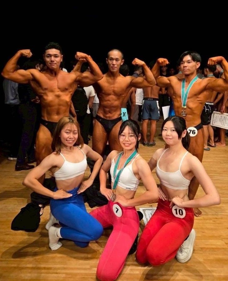 大会後、江口さんは「3度目の挑戦でやっと表彰台に登ることができました。悔しくもうれしくもあります。ラストイヤーで一番高くから景色を見るために精進します」と思いを語り、男子ボディビルの部と男子フィジークの部でトップ10入りを果たした森東さんは「トップ10に入れてうれしかったです。応援してくださった方々に感謝申し上げます。来年は一般の大会にも挑戦したいです」と振り返るとともに次の目標についても話しました。