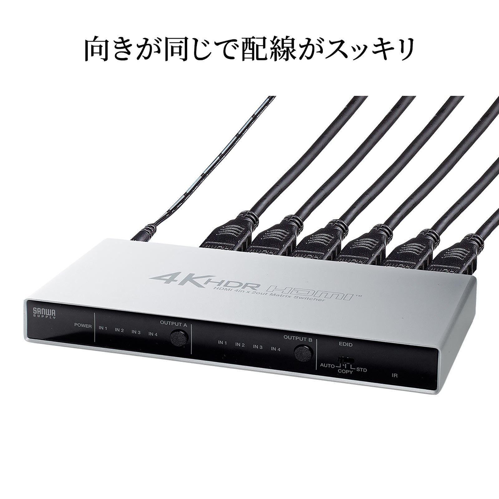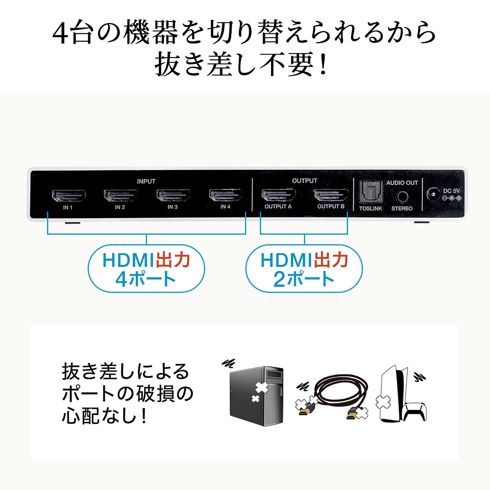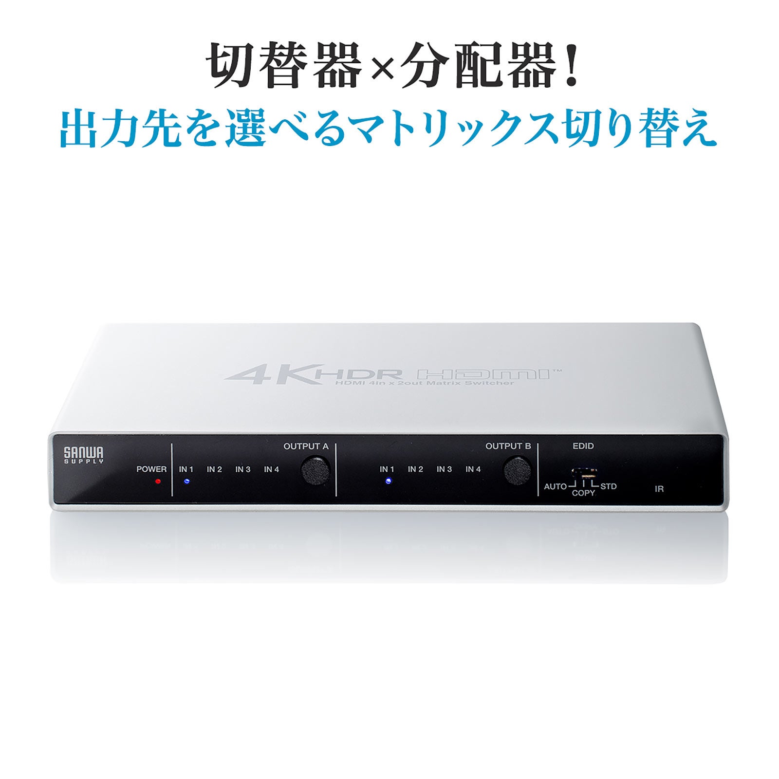 HDMIマトリックス切替器 4入力2出力 4K/60Hz HDR対応 光デジタル端子付き