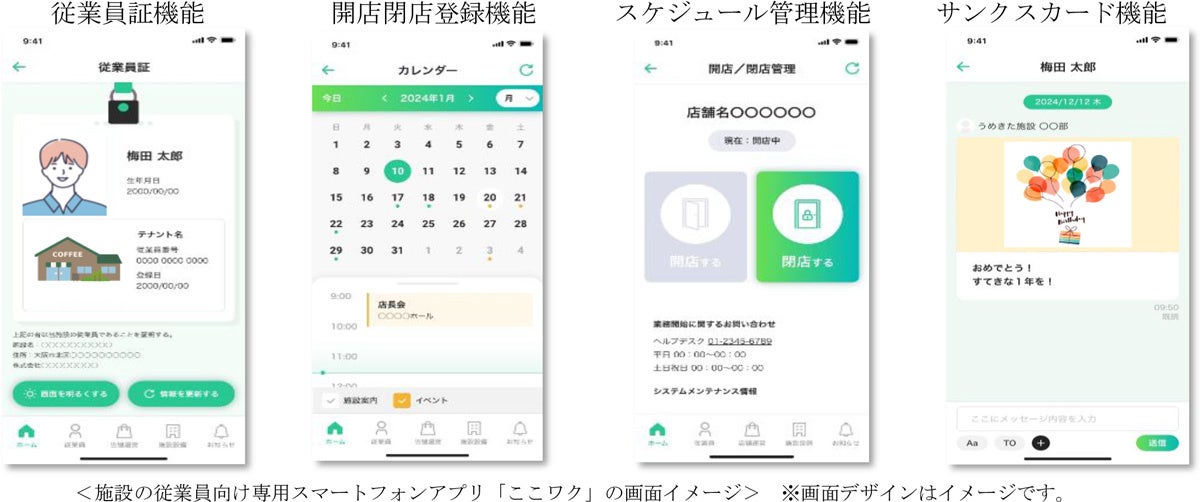本共同事業の中核は、施設の従業員向け専用スマートフォンアプリ「ここワク」です。