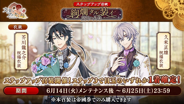 ※ステップアップ召装『絢爛タル装イ 芥川&久米』は帝國券のみで購入できます。