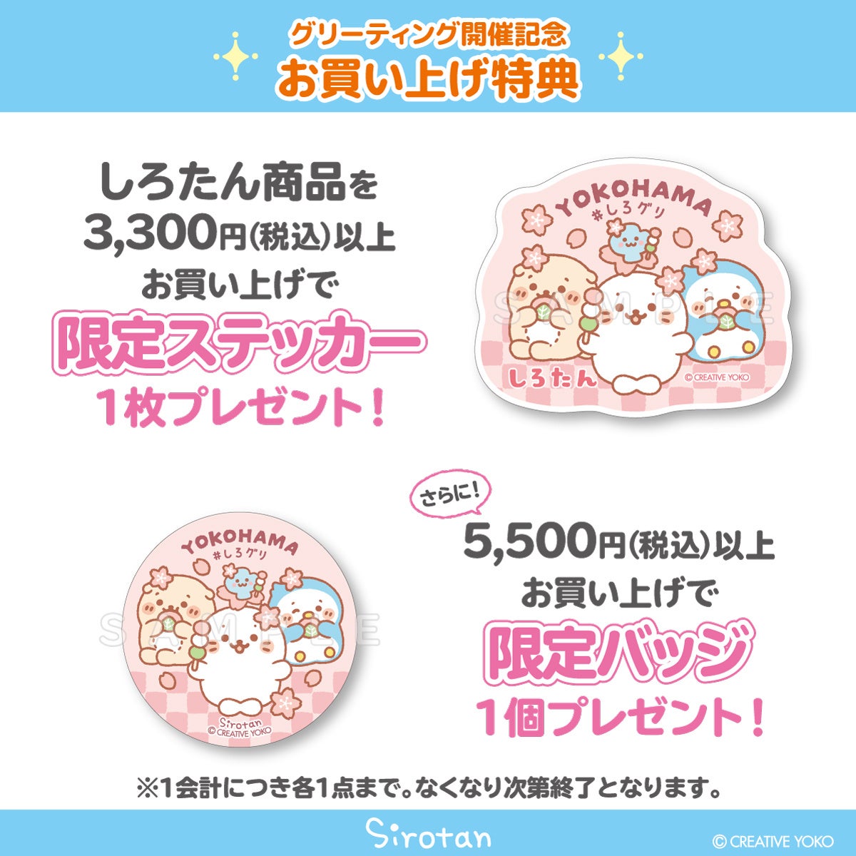 しろたん商品をお買上げ頂くと「桜」をテーマにしたノベルティをその場でプレゼント!