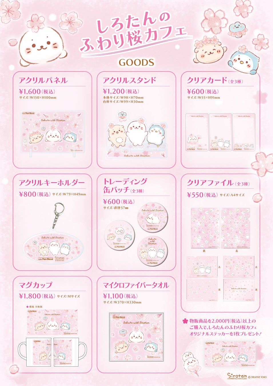 「しろたんのふわり桜カフェ」描き下ろしイラストを使用したオリジナルグッズを販売します。