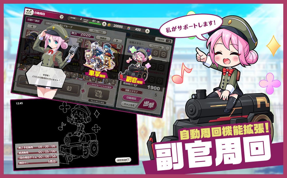 「副官自動周回」ではアプリを画面上で操作していないバッググラウンド状態での動作対応。