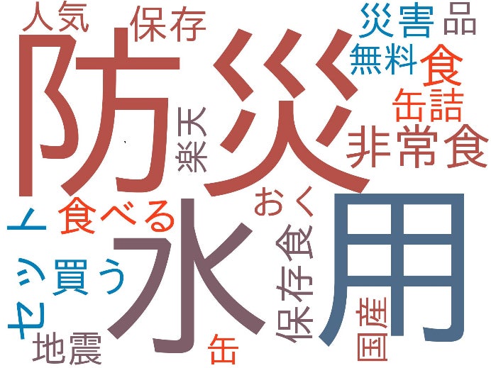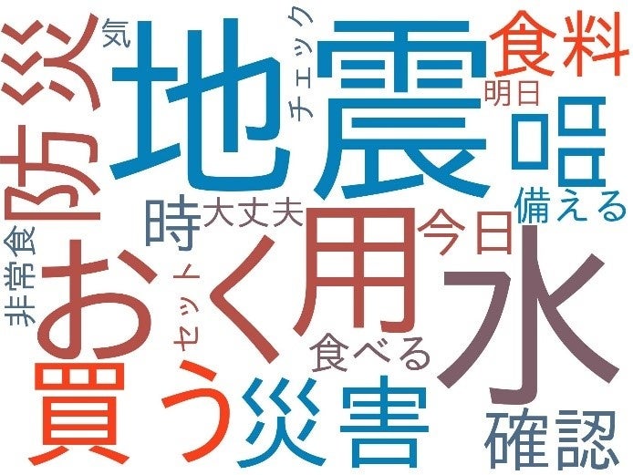 - 「水」や「非常食」、「食料」への言及が多くなっている。
