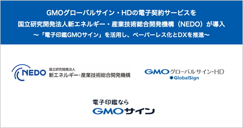 GMOグローバルサイン・HDの電子契約サービスを国立研究開発法人新エネルギー・産業技術総合開発機構(NEDO)が導入