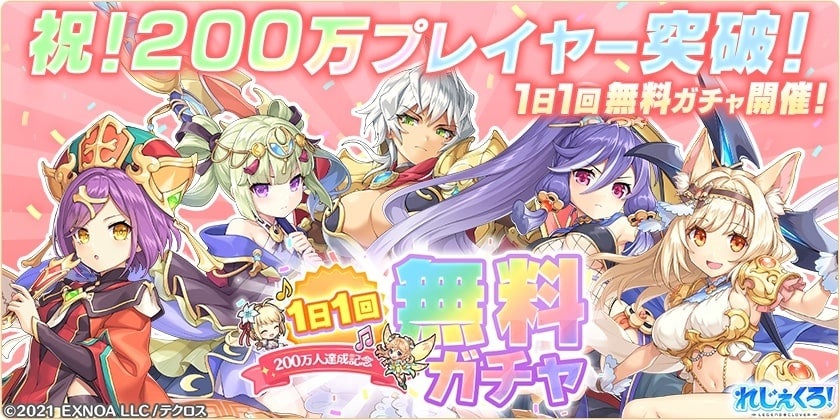 「200万人突破記念 1日1回無料ガチャ!(10回まで)」を開催します!