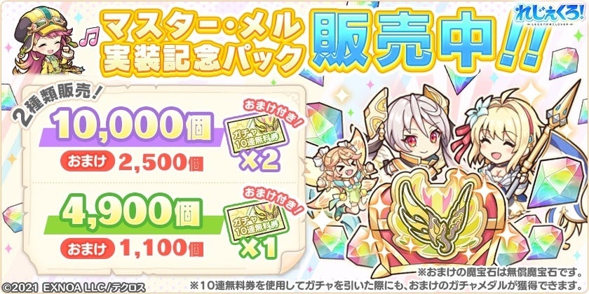 合同会社EXNOA(本社:東京都港区、CEO:村中 悠介、URL:https://games.dmm.com/)が運営するDMM GAMESにおいて、真の英雄となる王道ファンタジー『れじぇくろ!~レジェンド・クローバー~』(https://www.legend-clover.net/)は、新キャラクター「マスター・メル」が登場したことを発表した。さらにプレイヤー数200万人達成記念キャンペーン第2弾として、10日間で最大10回分のガチャを無料で引くことができる1日1回無料ガチャキャンペーンを開催する。