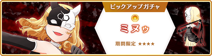 本ガチャより、魔法少女「ミヌゥ(CV.田中理恵)」とメモリア「若く可憐なる王妃」が期間限定で登場いたします。