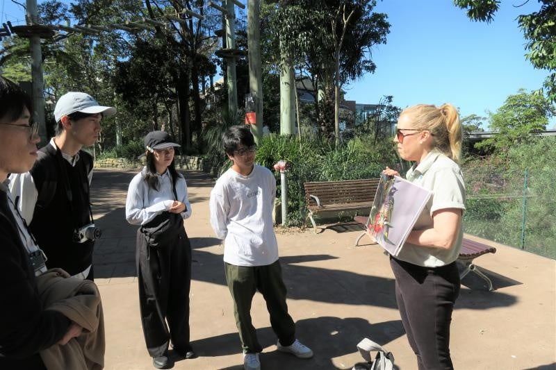 研修では、シドニー大学やニューサウスウェールズ州大学の研究室訪問・学生交流に加えて、JETROシドニー事務所訪問では渡邉尚之所長との対談、Taronga Institute of Science and Learning訪問ではDr. Lauren Coleによる特別講義を受けるなど、さまざまな学びの機会がありました。