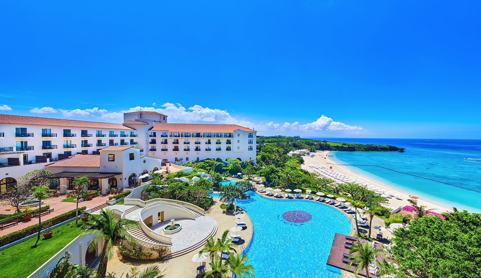 ホテル日航アリビラは、異国情緒漂うスパニッシュコロニアル調の建物が特徴的なオンザビーチのリゾートホテルです。ホテルの目の前は「アリビラブルー」と称される沖縄本島屈指の透明度を誇る海が広がります。