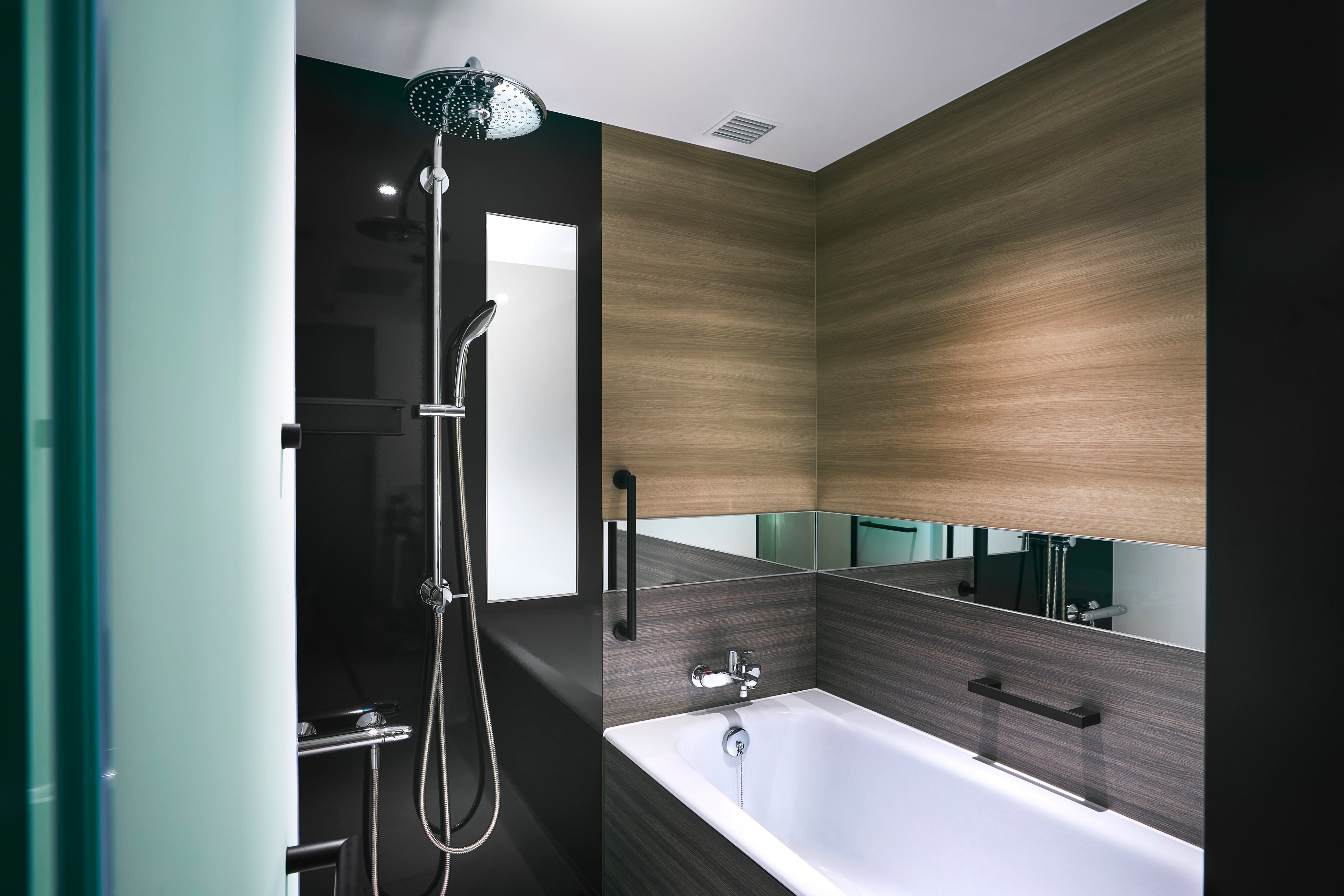 『エグゼクティブジュニアスイート』の最大の特徴は、ゲスト同士のプライバシーと動線に配慮した革新的なレイアウトです。エントランスからリビングルームを経由せず、直接バスルームへアクセスできる動線を確保。ダブルベーシン(2つの洗面ボウル)を備えたゆとりあるバスルームや、柔らかな雨に包まれるようなオーバーヘッドシャワーを採用し、同室の方に気兼ねすることなく、優雅なバスタイムと身支度の時間をお過ごしいただけます。単なる宿泊場所ではなく、暮らすように寛げる「真の居住性」を追求しました。