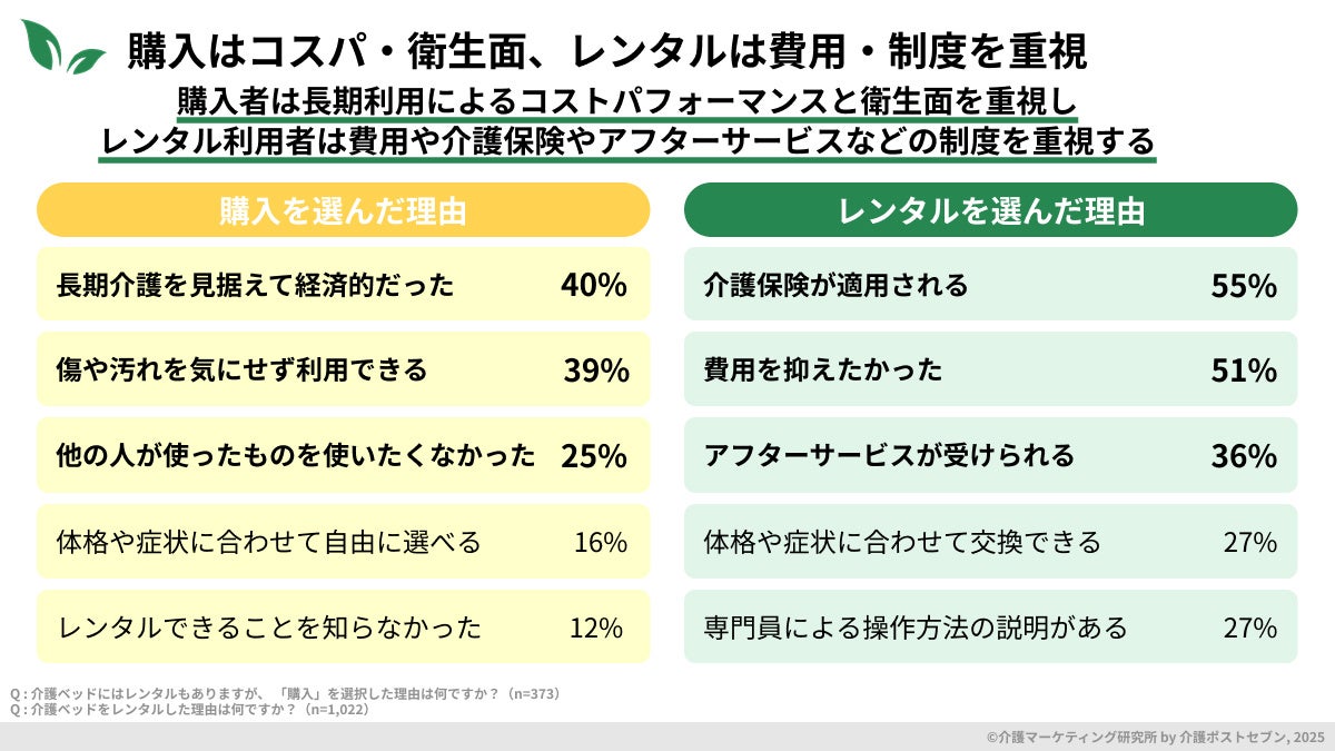 「今回の調査から『介護ベッドの利用はレンタルが主流』という現実とともに、購入・レンタルそれぞれに明確な選ばれる理由があることが判明しました。