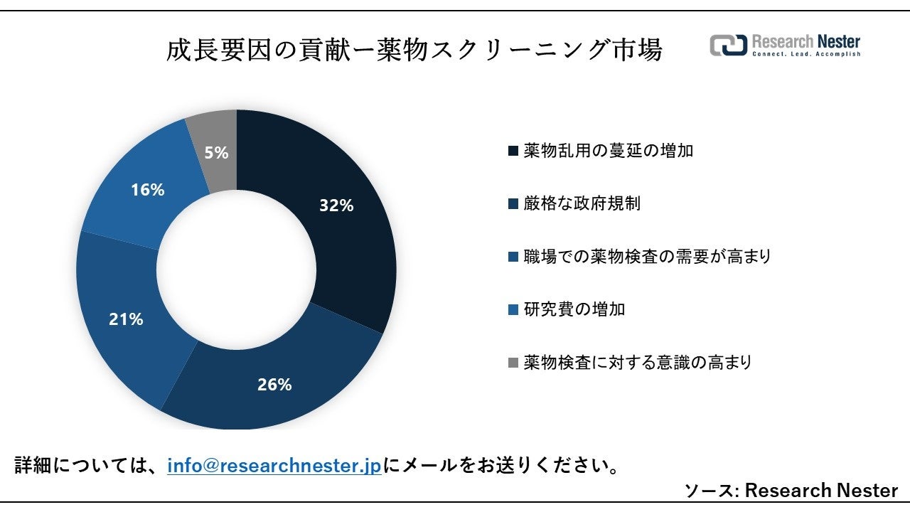 薬物乱用の蔓延の増加ー薬物乱用の発生率の増加は、薬物スクリーニング業界にとって重要な推進力となっています。米国では、薬物使用と健康に関する全国調査(NSDUH)によると、2019年に12歳以上の約20.1百万人が薬物使用障害を患っており、これは人口の7.4%に相当します。この中には、アルコール使用障害を持つ人が 14.5百万人、違法薬物使用障害を持つ人が 8.1百万人含まれます。